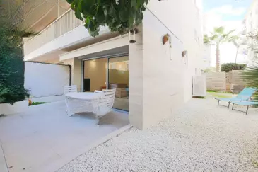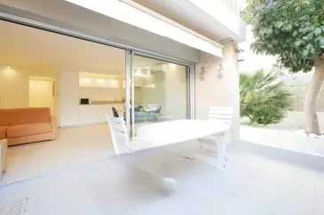 В престижном районе Palm Beach, великолепная двухкомнатная квартира площадью 46,55 м², полностью обновленная с террасой и садом в 75 м², ориентированная на юг и запад, расположена в небольшом элитном комплексе, рядом с морем, магазинами и Круазеттой. ☀️