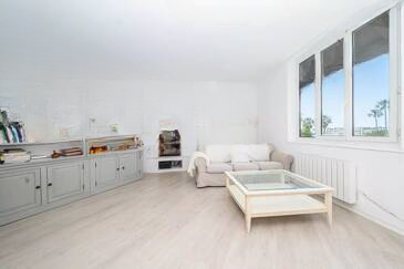 Планировка квартиры включает в себя вход, просторную и светлую гостиную и оборудованную открытую кухню. Также предусмотрены две спальни и ванная комната.