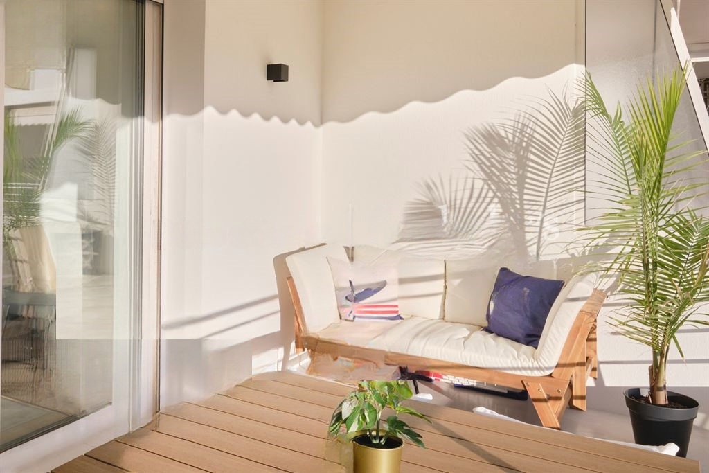 Терраса 11 м², ориентированная на юг, предлагает приятный боковой вид на море и является настоящим преимуществом.