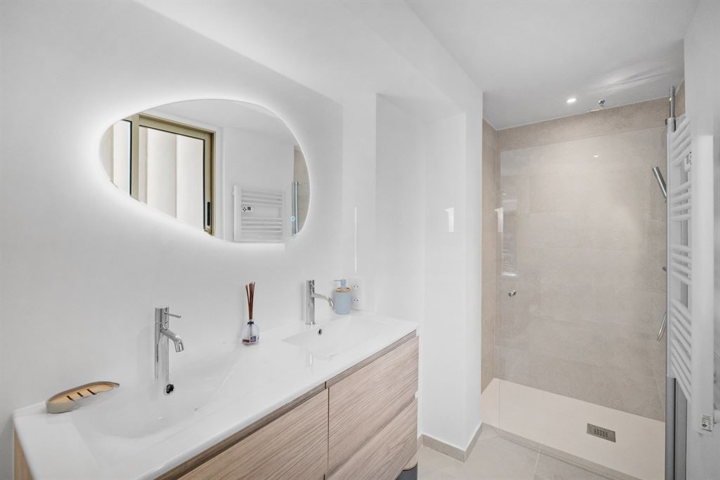 Апартамент предлагает двойную гостиную, выходящую на солнечную террасу, современную кухню с отдельной террасой и подсобным помещением, а также три спальни с встроенными шкафами и две современные ванные комнаты. Благодаря светлым и черезмерно освещенным помещениям, предлагает тишину и комфорт в любое время суток.