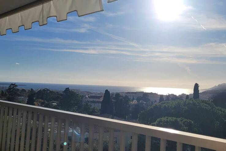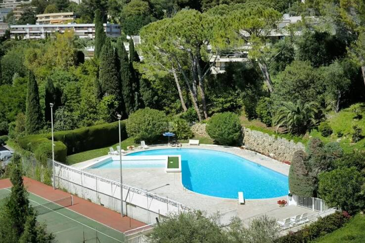 В легендарной резиденции в Каннах, в сердце парка с деревьями, бассейном и теннисными кортами, расположен красивый светлый апартамент площадью 106 кв. м на высоком этаже с панорамным видом на бухту Канн и Эстерель.