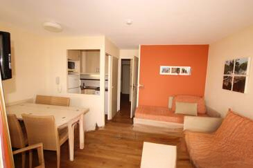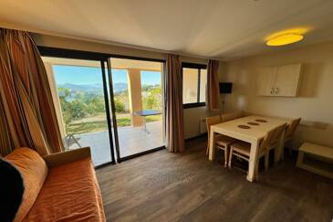 Встроенная кухня и уютная гостиная, отдельные ванная комната и туалет, спальня с двуспальной кроватью, а также закрытая кабина с двухъярусными кроватями. ️