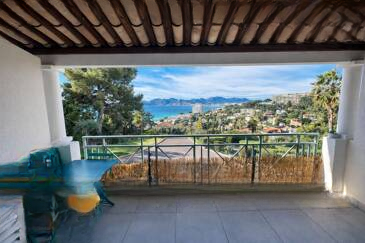 La Villa Francia. Очень красивая квартира типа 2/3 комнаты площадью 35 м², тихая, состоит из входа с местом для сна, спальни с двуспальной кроватью, душевой комнаты с умывальником, отдельного туалета, гостиной с оборудованной кухней и террасы площадью 10 м², ориентированной на юго-запад, с прекрасным видом на море и Эстераль. Насладитесь вашей террасой без посторонних глаз и шума. Место на крытой парковке.