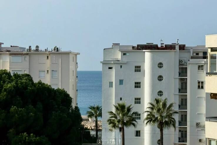 Этот великолепно расположенный апартамент в престижной многоквартирной собственности находится на предпоследнем этаже углового здания и занимает площадь 95 квадратных метров с видом на море.