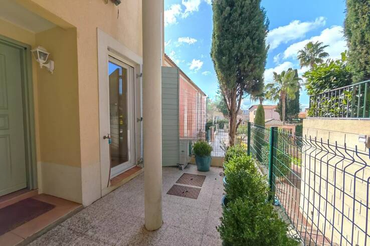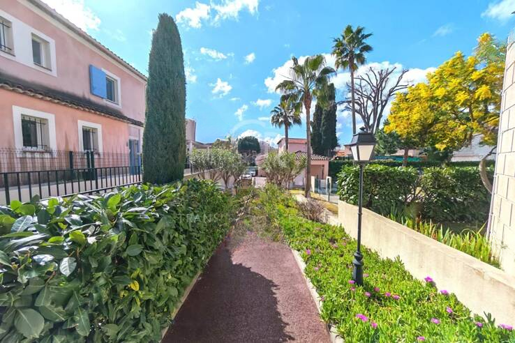 Вилла с террасой на крыше и 96 м² внешнего пространства. Расположена в тупике, у подножия престижного района Croix des Gardes в Каннах, в особенно тихой и зеленой обстановке.