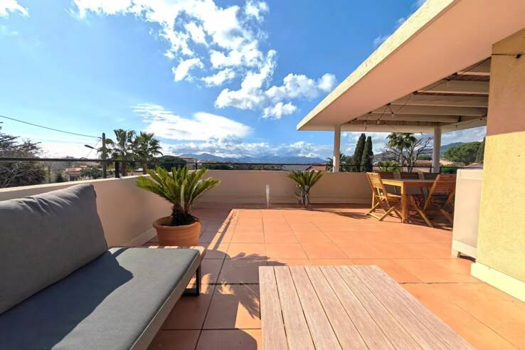 Элегантная вилла с крышей-террасой и 96 м² внешнего пространства находится в тихом и зеленом уголке у подножия престижного района Croix des Gardes в Каннах. Расположенная в малой, уединенной копроприетации из всего 19 вилл, построенной в 2006 году, она предлагает красивые зелёные зоны и большой бассейн. Вилла находится всего в 15 минутах ходьбы от пляжей и удобств.