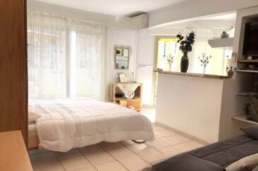 Квартира включает в себя прихожую, светлую жилую комнату с кухней, ванную комнату с туалетом. Прекрасная угловая терраса с видом на море дополняет недвижимость.
