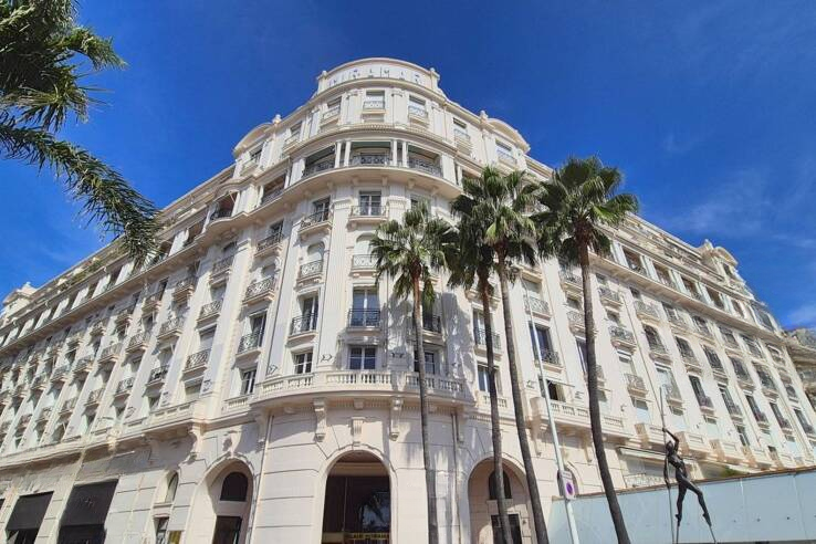Квартира расположена на Круазетт, между отелями Carlton и Martinez, в Palais Miramar, что является символическим зданием Канн, известным своей архитектурой и качественными общественными зонами.