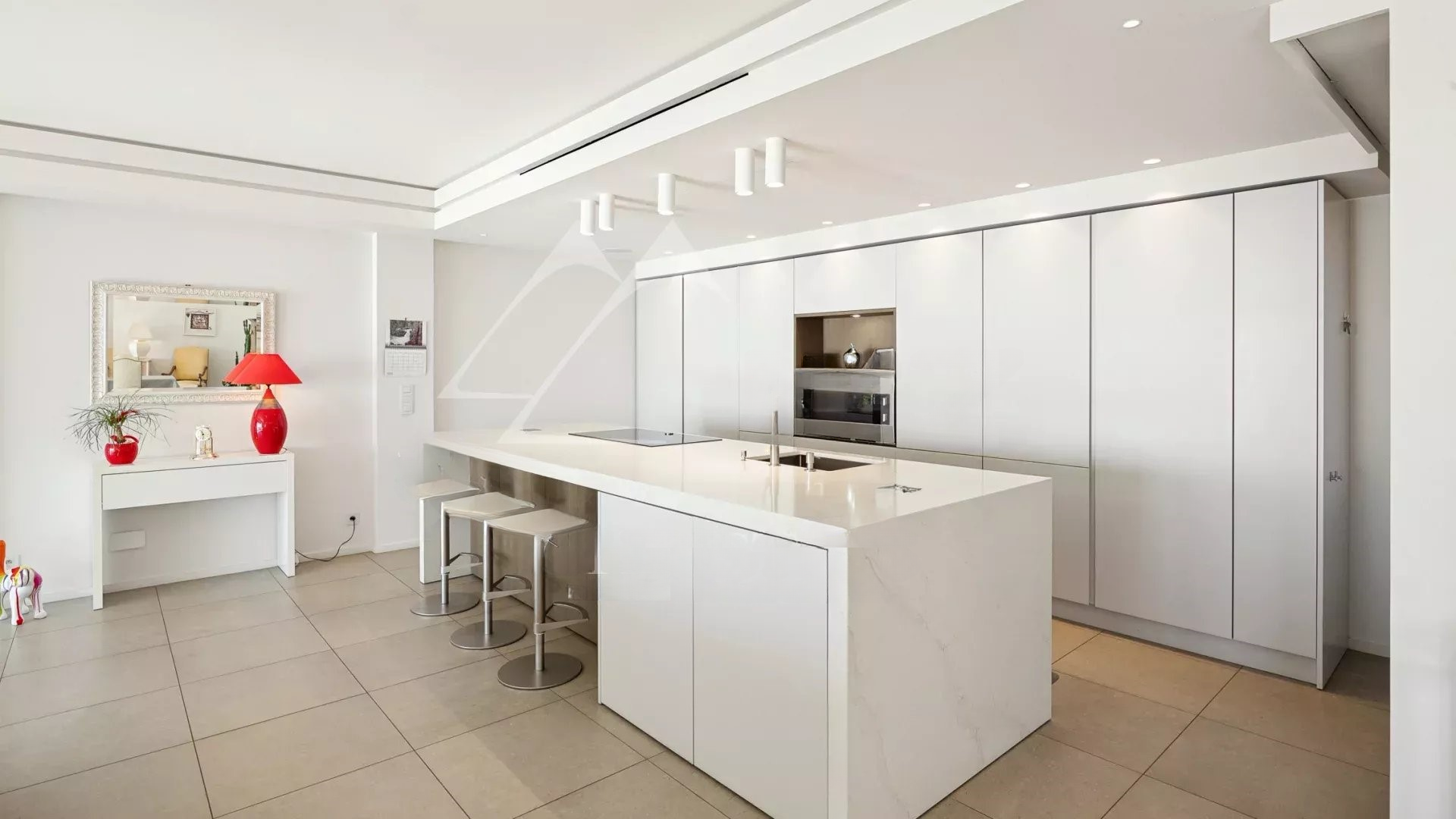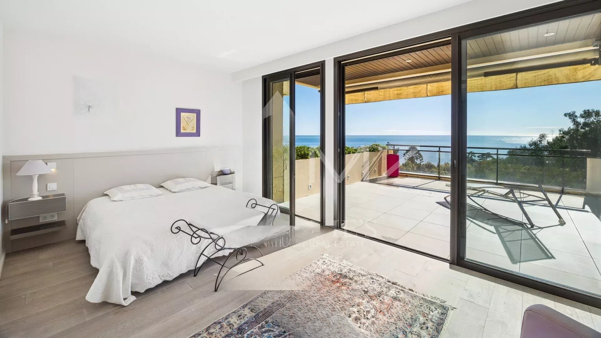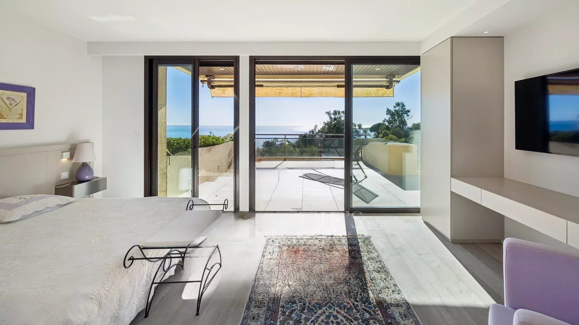 Жилье выделяется современным стилем и отличным состоянием. Просторная гостиная-столовая площадью 98 м² выходит на террасу с потрясающим панорамным видом на Средиземное море и острова Лерин, создавая идиллическую атмосферу для жизни.