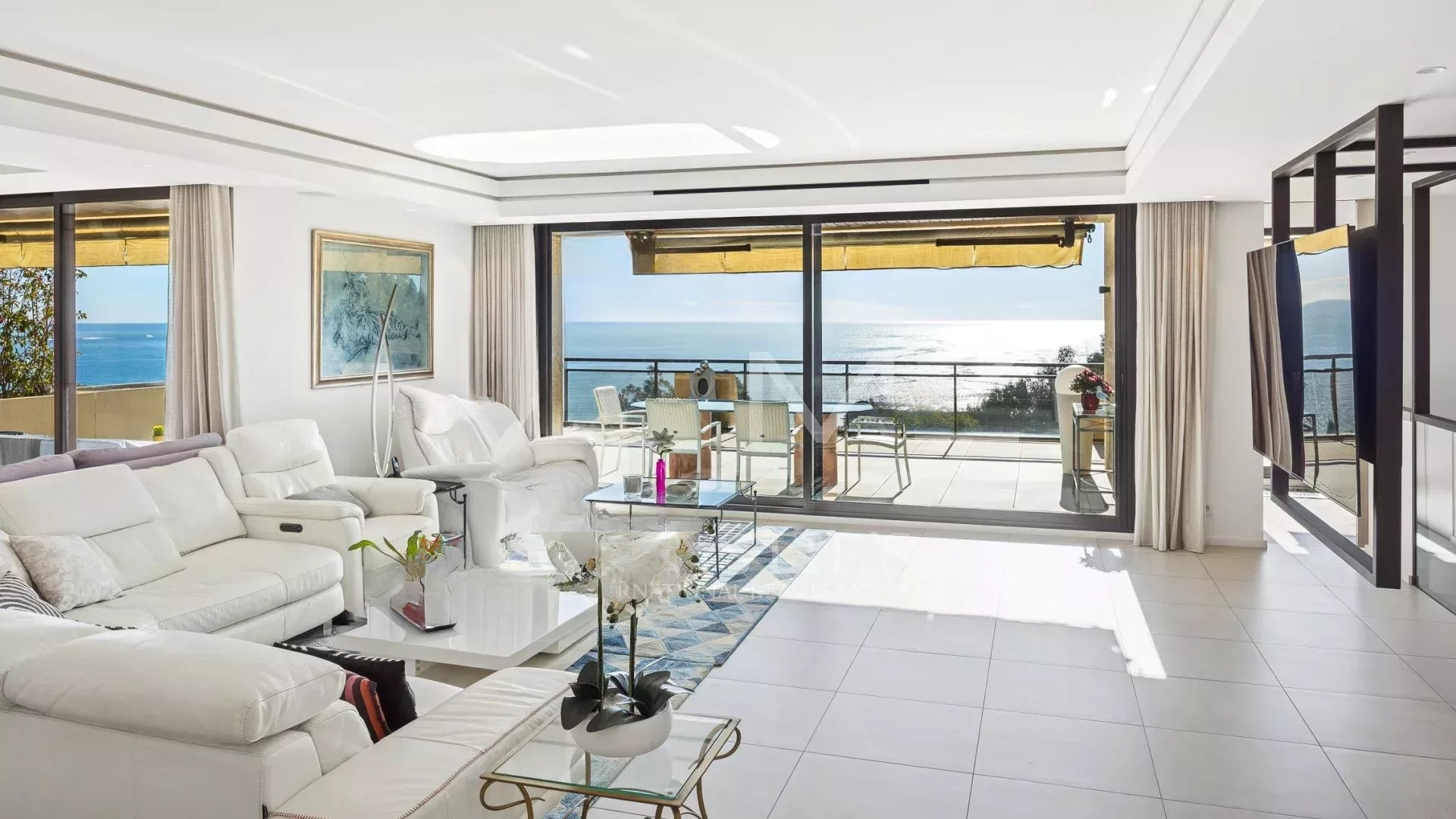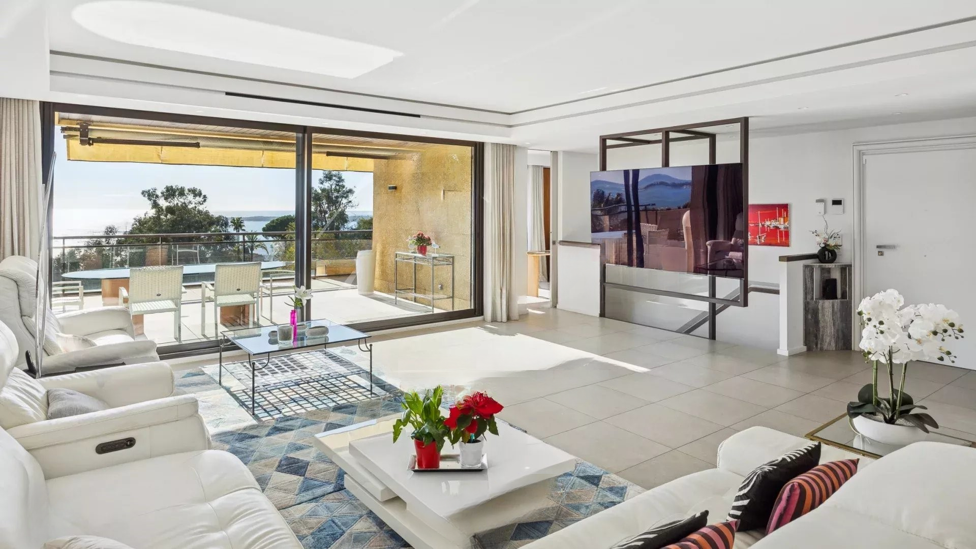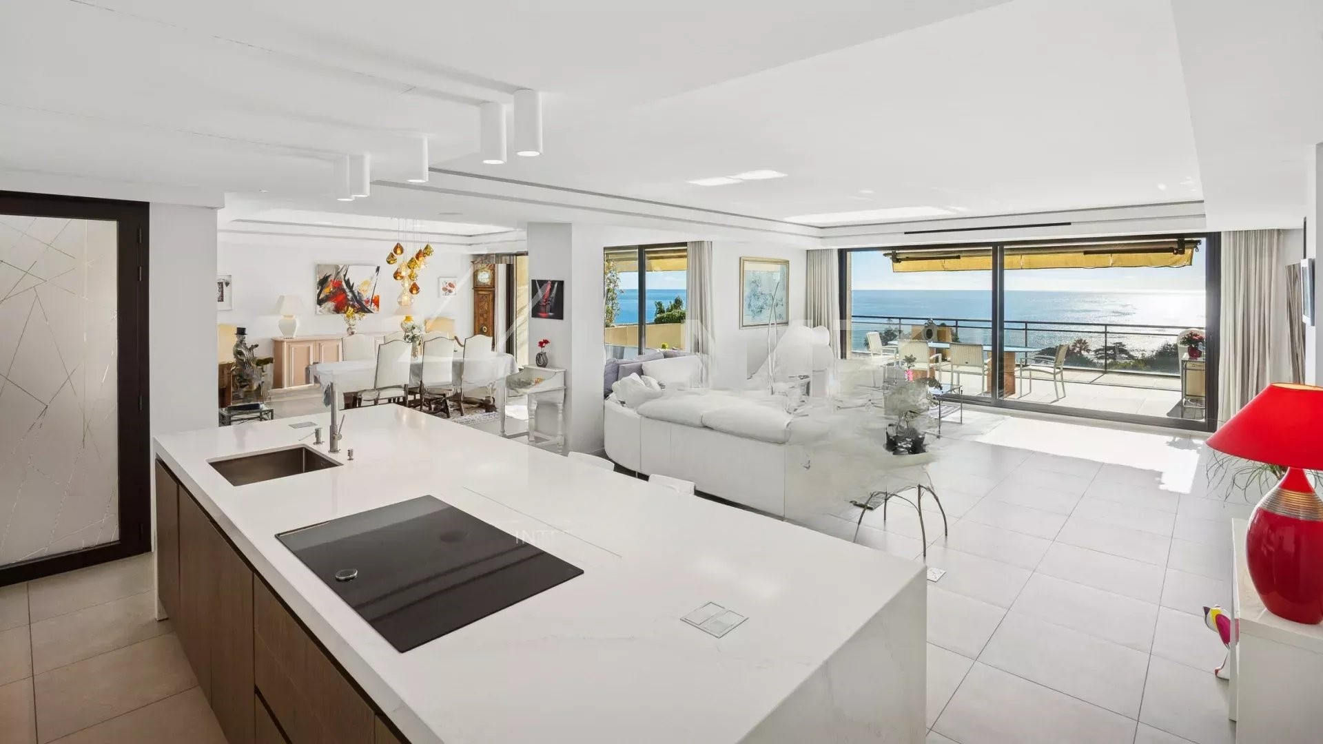 Жилье выделяется современным стилем и отличным состоянием. Просторная гостиная-столовая площадью 98 м² выходит на террасу с потрясающим панорамным видом на Средиземное море и острова Лерин, создавая идиллическую атмосферу для жизни.