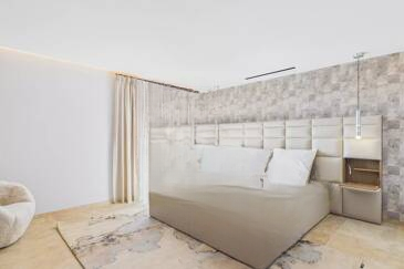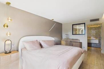 Она состоит из прихожей, просторного салона/столовой, полуотдельной кухни, а также 5 спален-сьют с ванными комнатами и гардеробными.