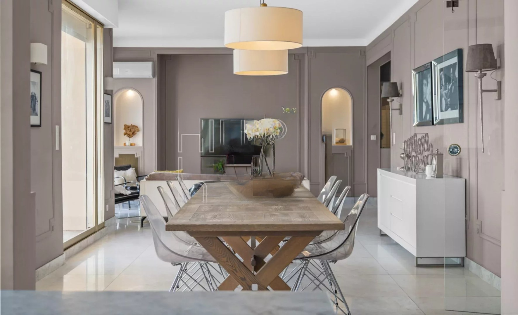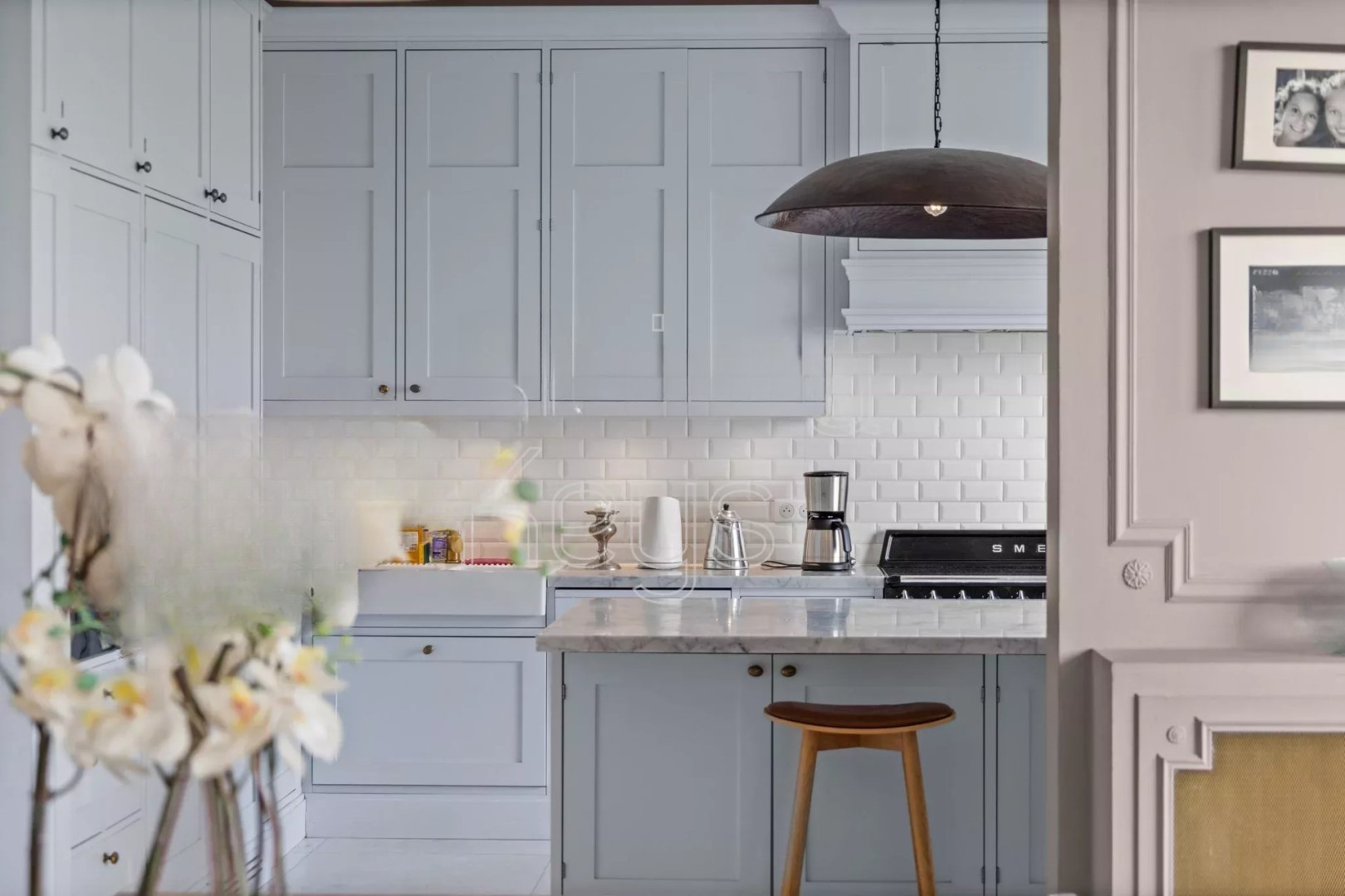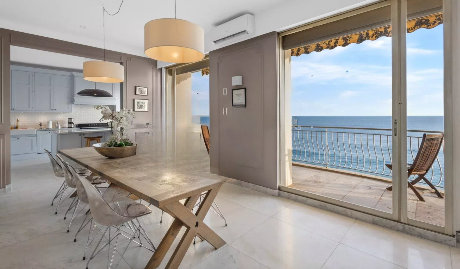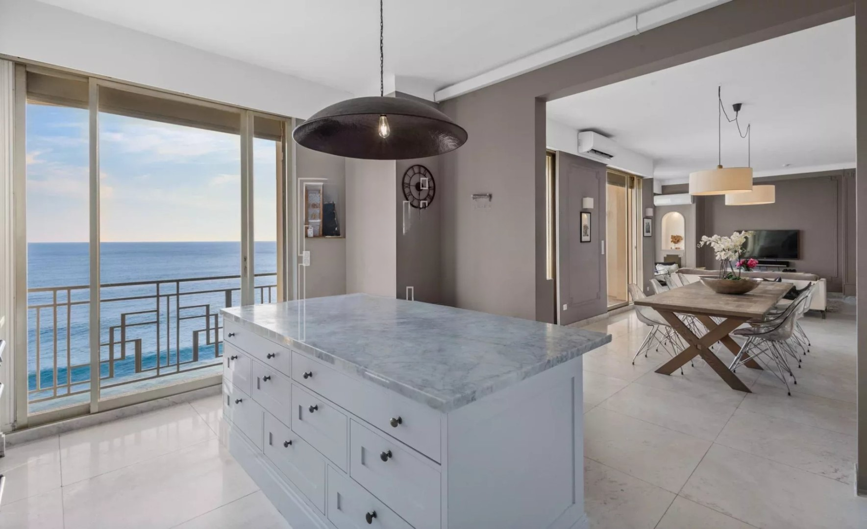 Апартаменты включают просторный вестибюль, большую светлую гостиную с обеденной зоной и открытой кухней, 6 спален, 4 ванные комнаты с туалетами и душем/ванной, а также 2 гостевых туалета. Современная кухня оборудована большим центральным островом и встроенной техникой от признанных мировых брендов.