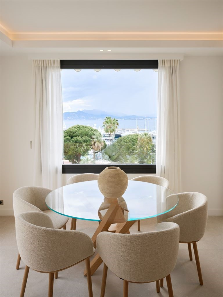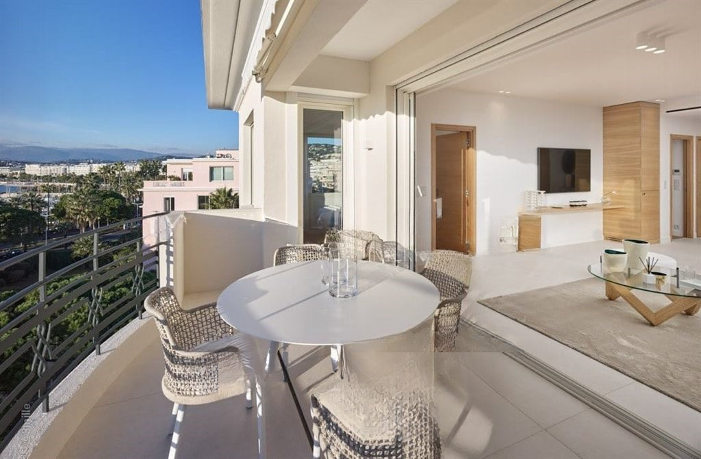 Расположенная на бульваре Круазетт в Каннах, эта сквозная квартира на последнем этаже площадью около 118 м², полностью отремонтированная с использованием качественных материалов, предлагает панорамный вид на залив Канн и Средиземное море.