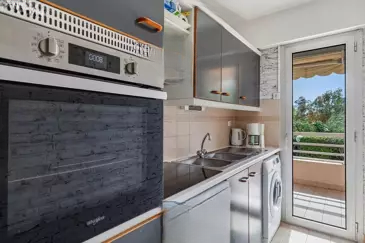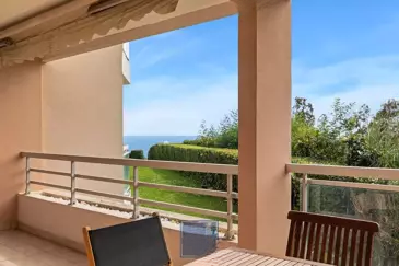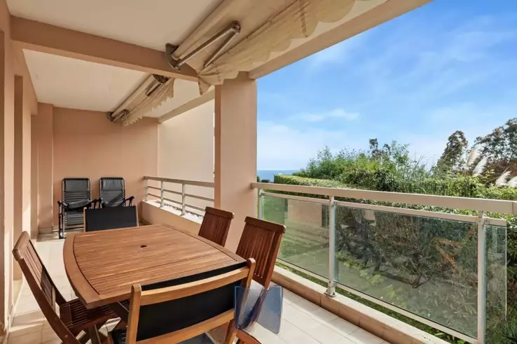 Эксклюзивно, красивое 2/3-комнатное жилье площадью 53 кв. м с прекрасной террасой 15 кв. м, видом на море и зелень, в красивой охраняемой резиденции с двумя бассейнами, парковкой и подвалом. Настоящий уголок природы в абсолютной тишине.