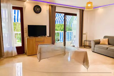 Идеально расположенный в двух шагах от моря (200 м), этот великолепный трехкомнатный кондиционированный и сквозной апартамент площадью 62 м² был полностью и качественно отремонтирован в 2025 году.