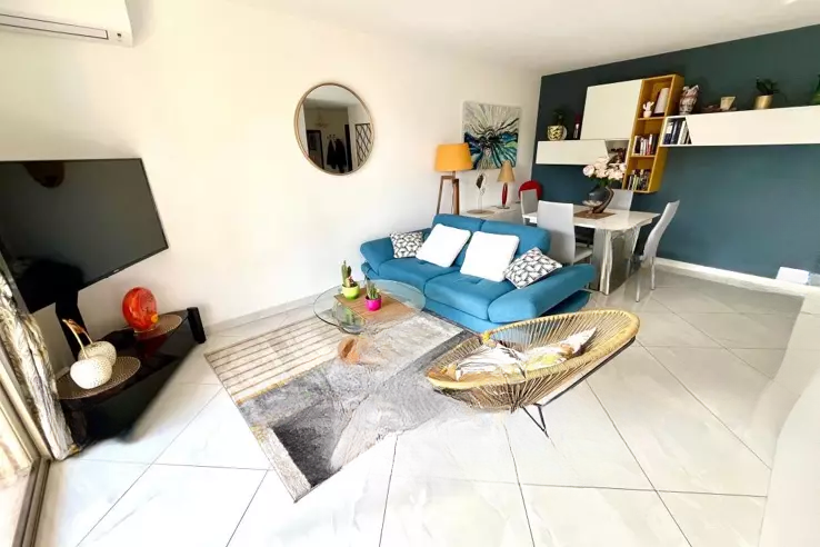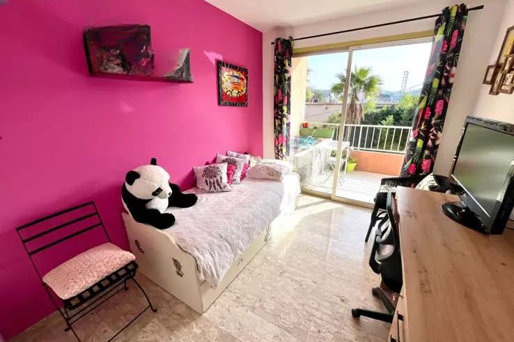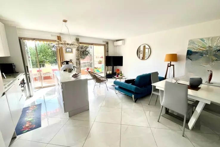 Канны. В тихом районе, в нижнем секторе Круа де Гарде, в резиденции с бассейном, предлагается приятная квартира в отличном состоянии на три комнаты, площадью около 63 кв.м. Включает в себя вестибюль с гардеробом, просторную гостиную с американской кухней, большую террасу с видом на сады, коридор, две спальни, ванную комнату и отдельный туалет. Квартира оснащена кондиционером. В комплекте имеются подвал и парковочное место в резиденции.