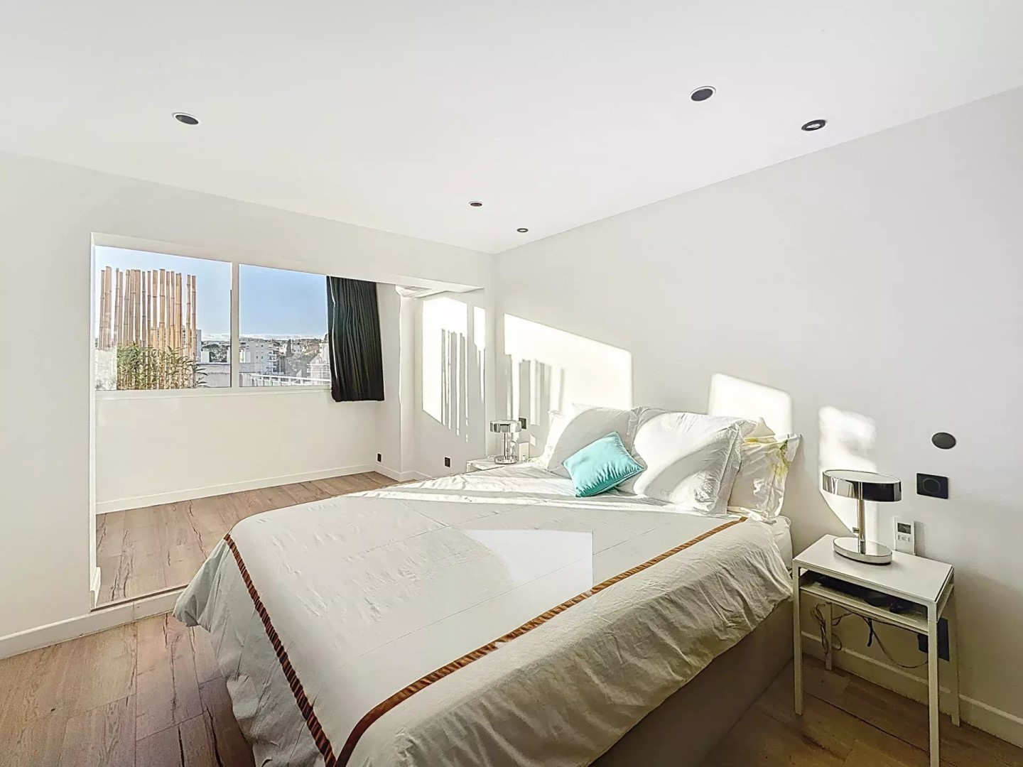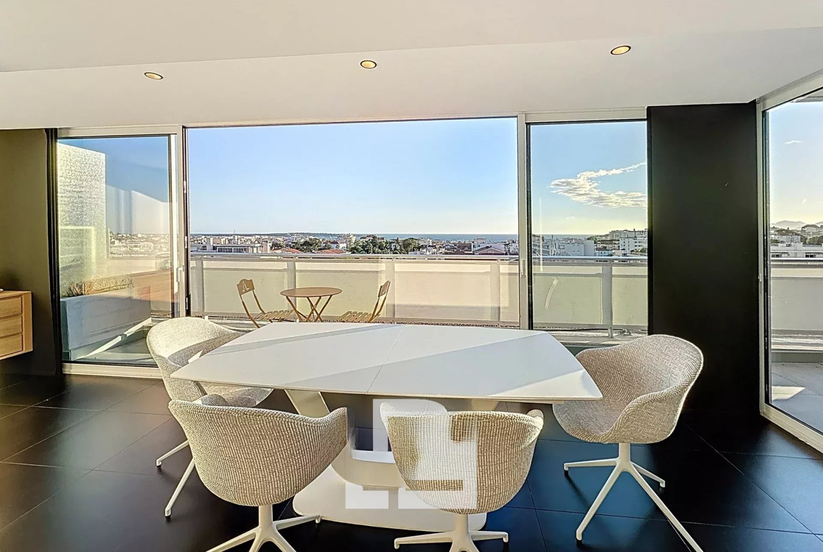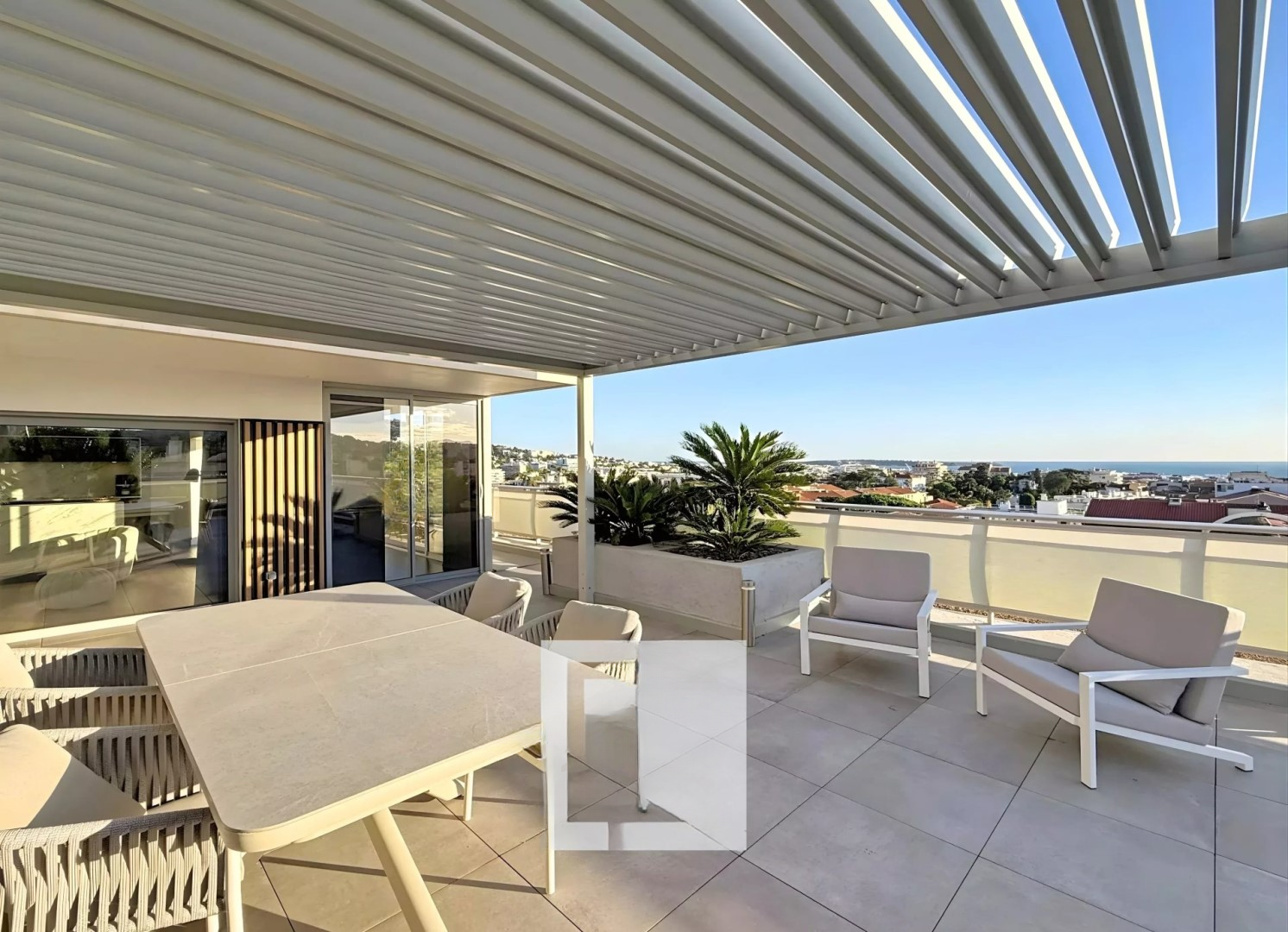 Площадь квартиры составляет 98 м², которую дополняет полностью обустроенная терраса площадью 70 м² с видом на море и район Калифорния.