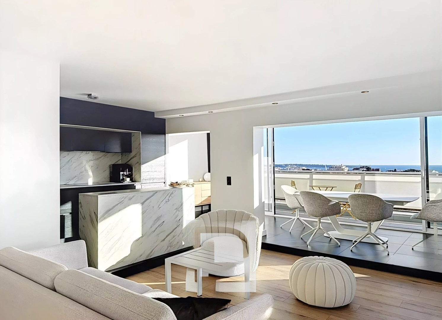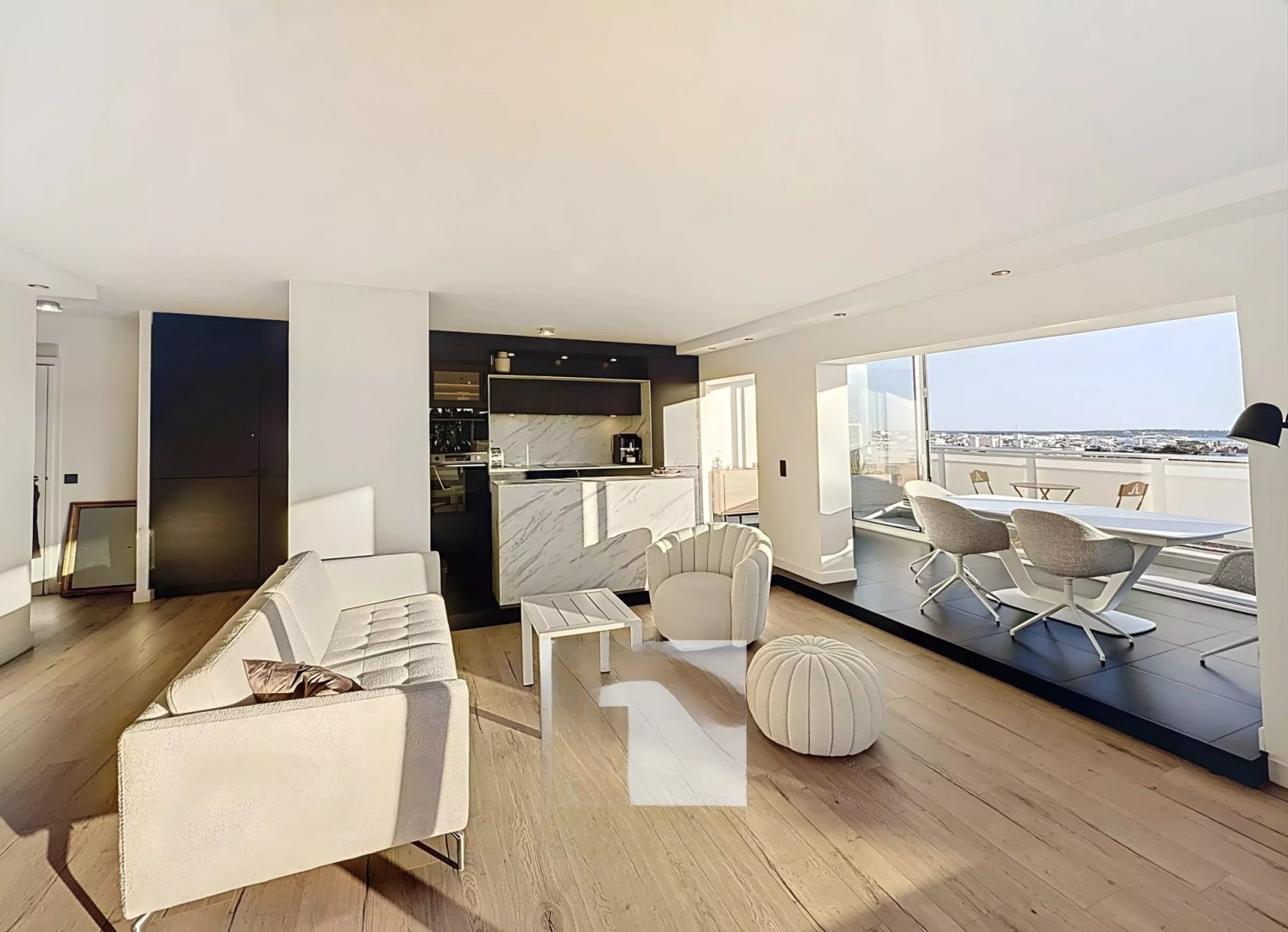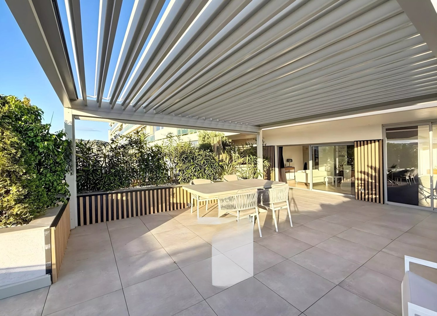 Площадь квартиры составляет 98 м², которую дополняет полностью обустроенная терраса площадью 70 м² с видом на море и район Калифорния.