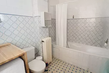Эта большая смежная трехкомнатная квартира включает вход, гостиную, спальню, кладовку, ванную комнату с туалетом, вторую спальню и коридор, ведущий в кухню с подсобным помещением. Очень светлая, она имеет балкон с видом на порт и море, идеально подходящий для наслаждения уникальной атмосферой центра города.