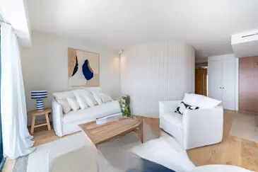 Полностью переосмысленный в духе современного Средиземноморья, апартамент привлекает естественной яркостью и спокойной атмосферой. Большие стеклянные панели выходят на просторную террасу, гармонично дополняя жилые зоны. Из каждой комнаты открывается захватывающий дух панорамный вид на море, от бирюзовых вод побережья до горизонта.