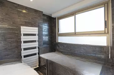 Он состоит из просторной гостиной площадью 35 кв.м, залитой светом, с оборудованной американской кухней, двух комфортабельных спален с гардеробными, площадью соответственно 11 кв.м и 12 кв.м, ванной комнаты с туалетом и окном. Гостиная открывается на приятную террасу площадью 11 кв.м с южной экспозицией.