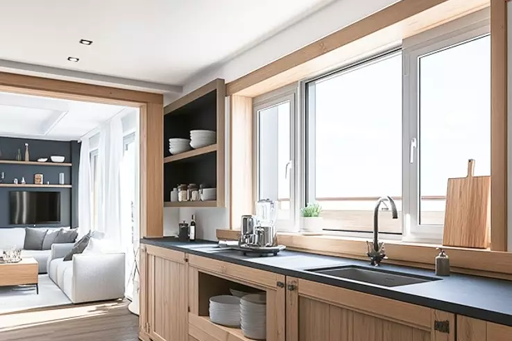 Она включает в себя: просторную гостиную, кухню, 3 спальни, 1 ванную комнату, 1 душевую комнату, 2 санузла.