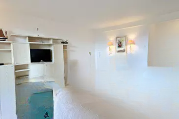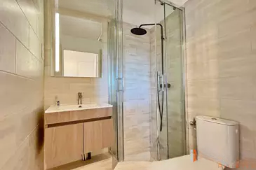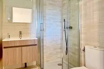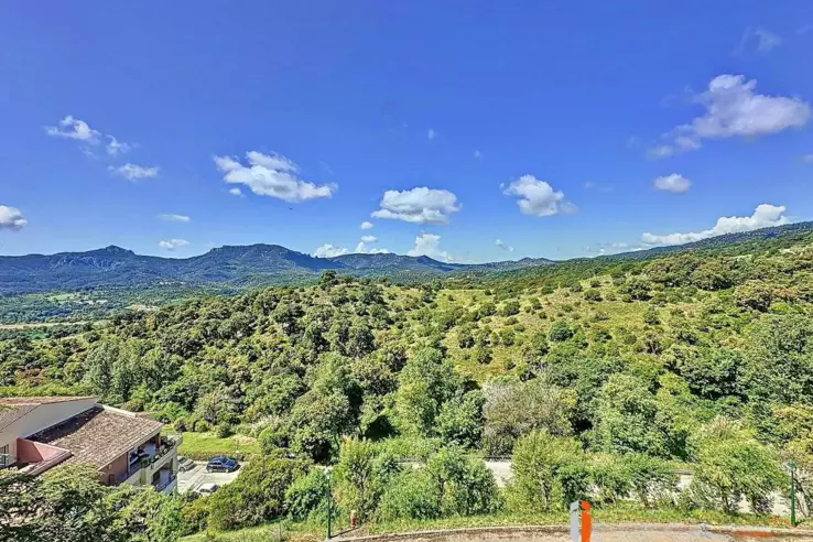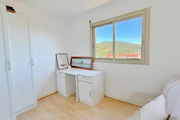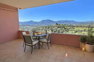 Просторная гостиная площадью 30 м², светлая, с большими стеклянными дверями, выходящими на крытую террасу с юго-западной ориентацией и открытым панорамным видом. Независимая оборудованная кухня с доступом на балкон/террасу около 10 м². 2 спальни. Ванная комната и душевая с туалетом. Квартира сквозная, светлая и тихая.