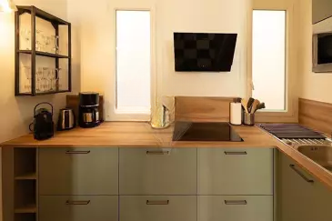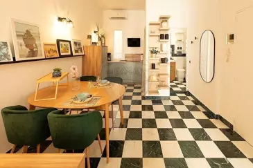 Общая площадь составляет около 40 м², что позволяет оптимально использовать каждый метр пространства. Квартира включает гостиную с оборудованной кухней и обеденной зоной, уютную гостиную, которую можно превратить в дополнительную спальню, спальню и красивую ванную комнату с туалетом.