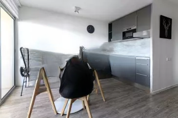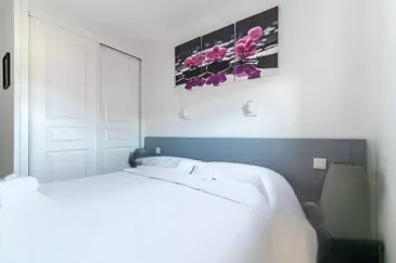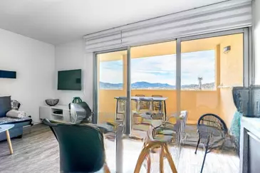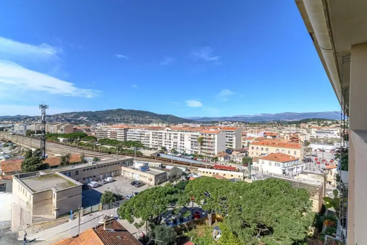 Прекрасная квартира с 3 комнатами на 8 этаже, полностью отремонтированная со вкусом, предлагающая отличные удобства: светлая гостиная с полностью обустроенной и оборудованной американской кухней (посудомоечная машина, стиральная машина, духовка, плита, вытяжка, микроволновая печь), все это выходит на лоджию площадью 12 кв. м с видом на море и панорамным видом на Эстерель. В спальне для родителей встроенный шкаф и кровать с ящиками (160 см); во второй спальне односпальная или двуспальная кровать (кровать с выдвижной кроватью) и комод, ванная комната и отдельные туалеты.