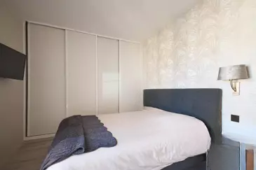 Объект площадью около 89 м² полностью обновлен и включает в себя приветливый вход, светлую гостиную с оборудованной открытой кухней, две спальни люкс с собственными ванными комнатами, а также гостевой туалет.