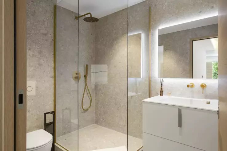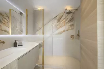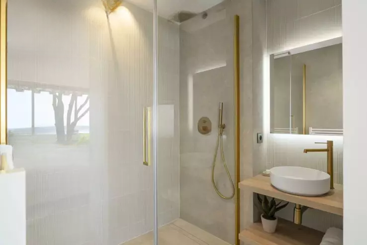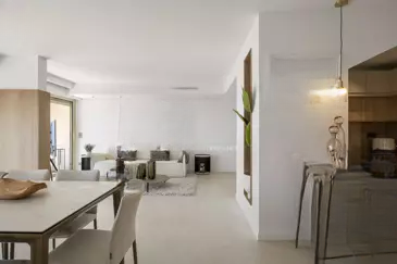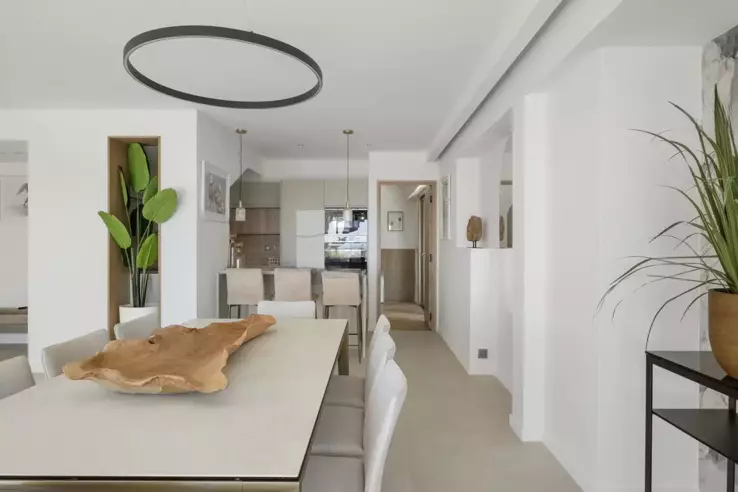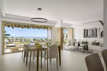 Он включает в себя оборудованную открытую кухню, большую гостиную с выходом на террасу и 4 спальни с ванными комнатами и гардеробными.