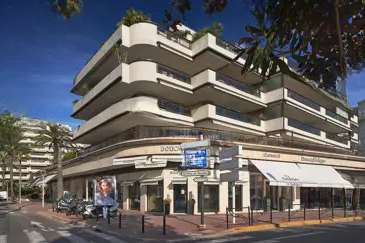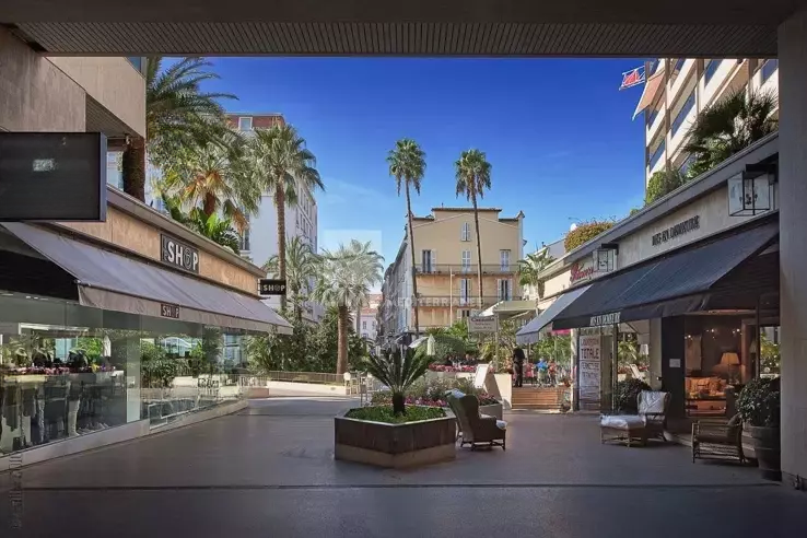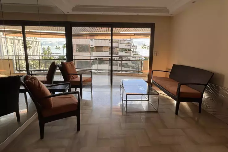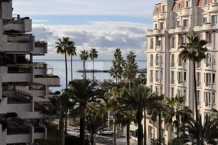 Элегантная квартира с 3 комнатами и видом на море расположена в престижной резиденции Le Gray d'Albion. Она находится на высоком этаже между улицей Антиб и набережной Круазетт, обеспечивая уникальное местоположение.