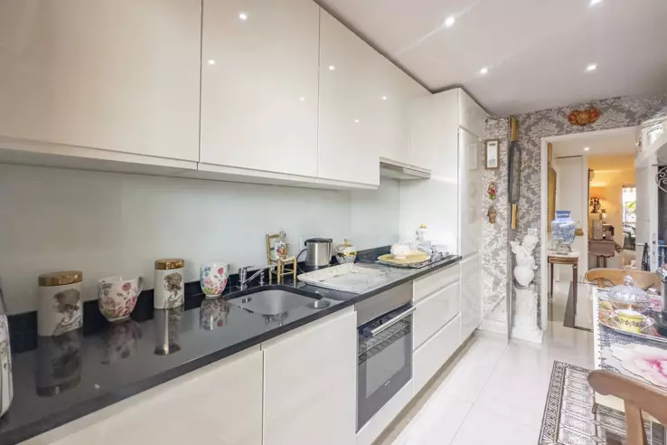 Квартира проходная и хорошо организована, с коридором, ведущим в каждую из комнат: гостиная и столовая выходят на приятную террасу, ориентированную на юг. Отдельная кухня полностью оснащена и объединяет функциональность и комфорт.