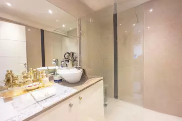 Спальная зона предлагает спальню с встроенными шкафами и кондиционером. Современная душевая комната с итальянским душем завершает интерьер.