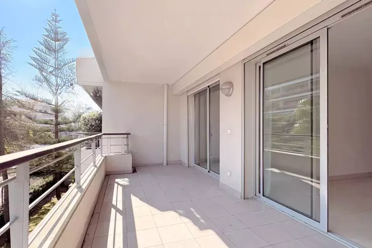 Резиденция CRISTAL CROISETTE на Авеню де Леринс: современное и престижное месторасположение на 2-м этаже. Прекрасная квартира площадью 89.18 кв. м с центральным кондиционированием и удачной планировкой. Просторная прихожая с большой гардеробной, обустроенная и частично оборудованная кухня (стеклокерамическая плита, вытяжка), гостиная площадью 31.40 кв. м. Кухня и гостиная выходят на западную террасу площадью 14.60 кв. м. В квартире также имеется коридор, гостевой туалет с умывальником, спальня площадью 14.65 кв. м с шкафом, ванная комната, вторая спальня площадью 13.68 кв. м с шкафом и душевая с туалетом. Обе спальни выходят на восточную террасу площадью 13 кв. м.