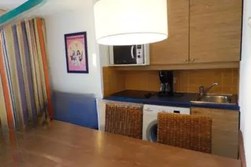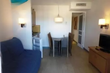 Она состоит из гостиной с открытой кухней, спальни-кабины, ванной комнаты и отдельного туалета. Терраса дополняет этот объект недвижимости.
