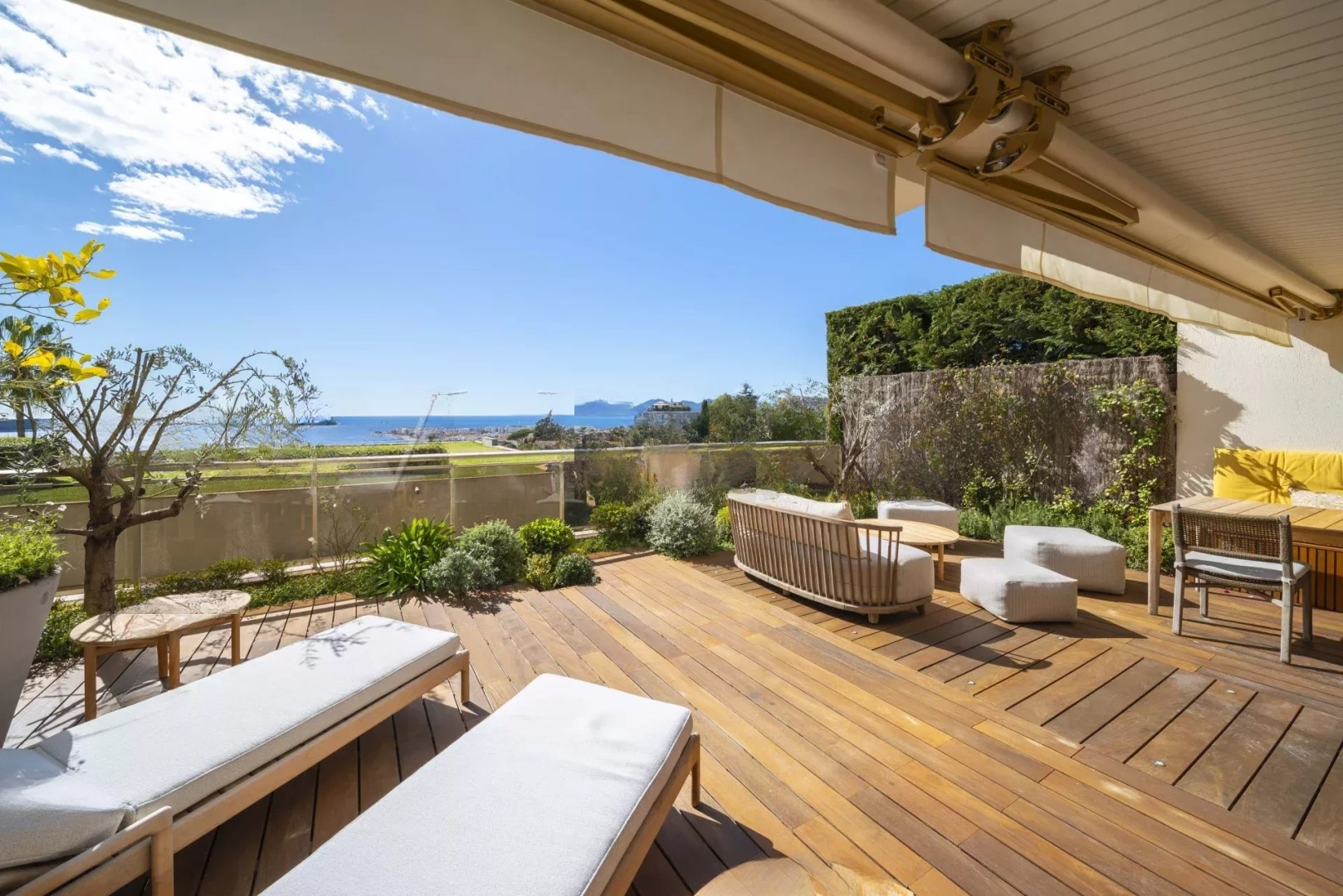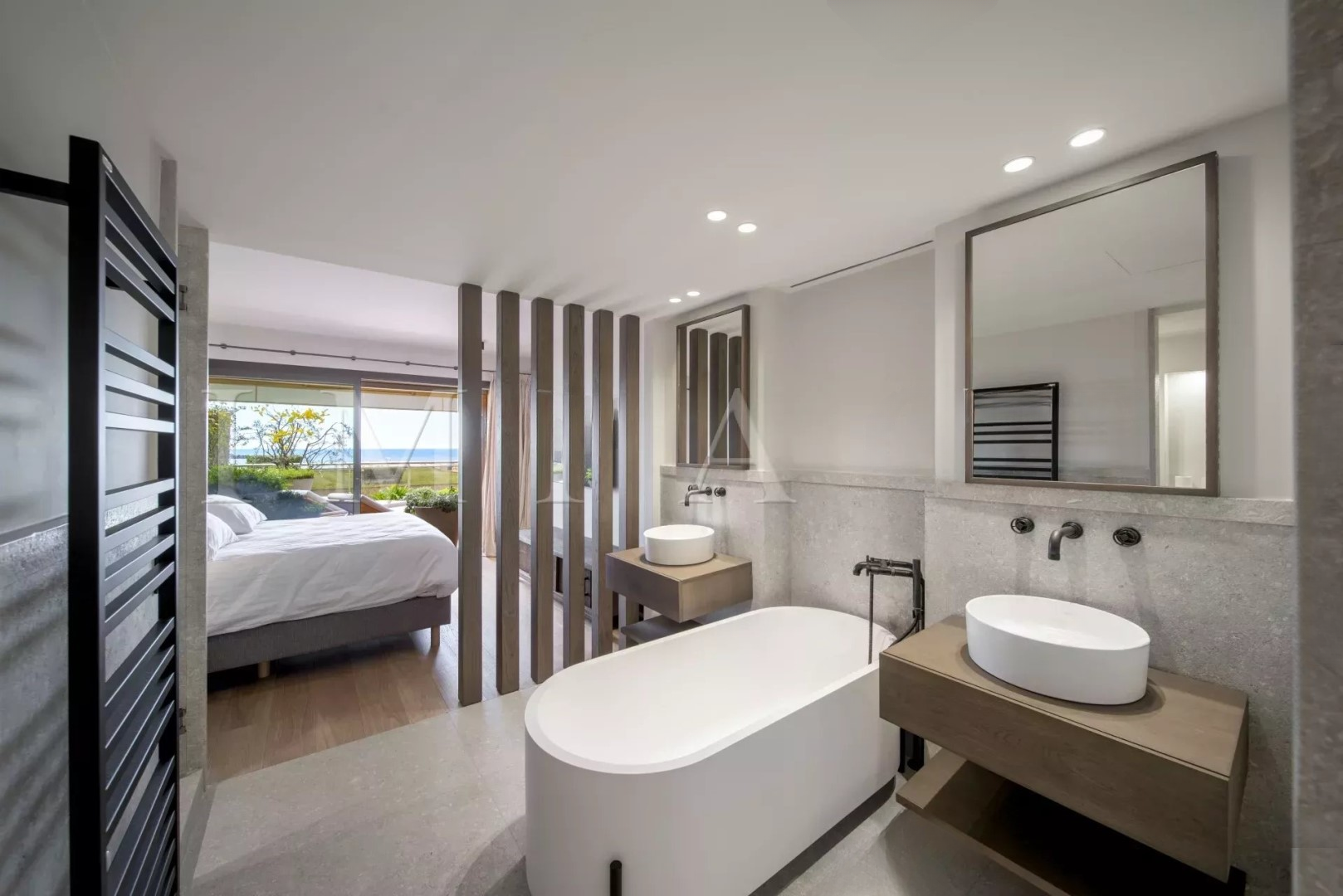Редкая возможность приобрести отремонтированную квартиру с видом на море и великолепной обустроенной террасой площадью около 57 м².