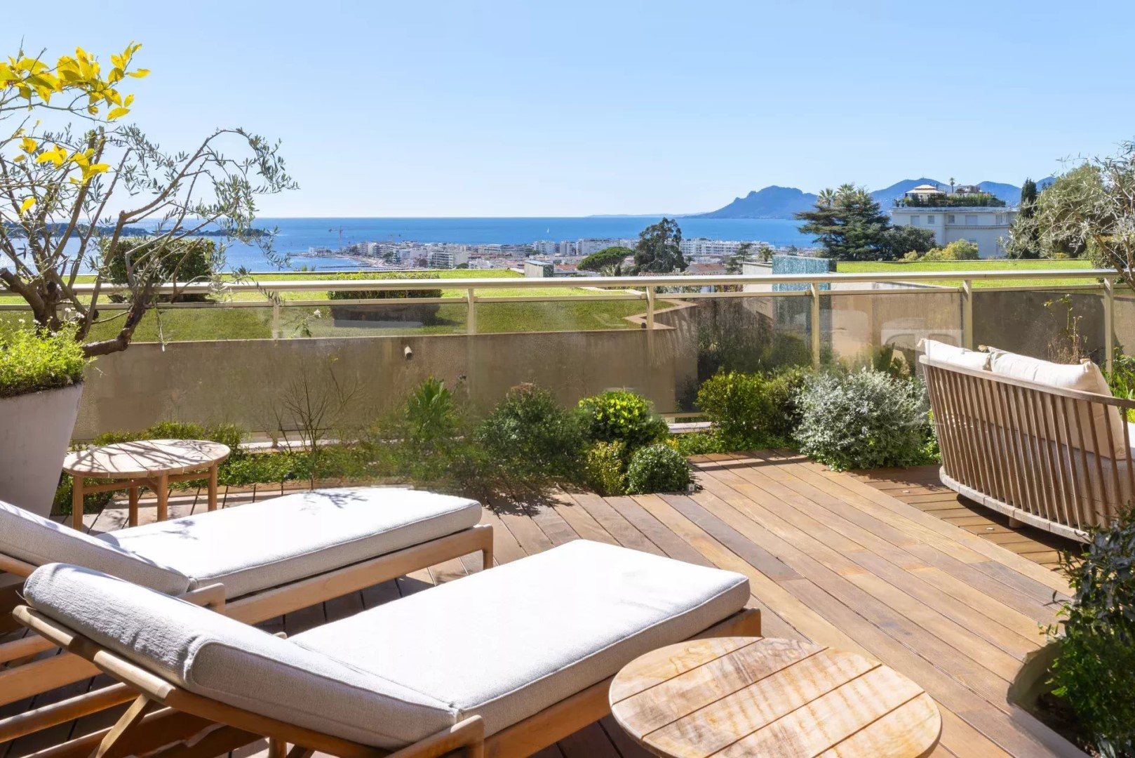 Квартира расположена в престижной резиденции на охраняемой территории с консьержами. В резиденции есть восхитительный парк, бассейн и теннисные корты. Находится в популярном районе Калифорния, это сквозная квартира с южным расположением и 3 комнатами площадью 81 м², откуда открывается панорамный вид на море, залив Канн, острова Лерин и холмы Эстерель.