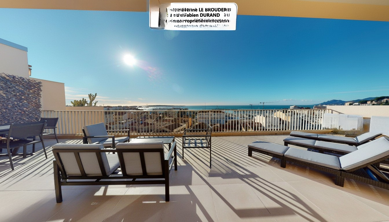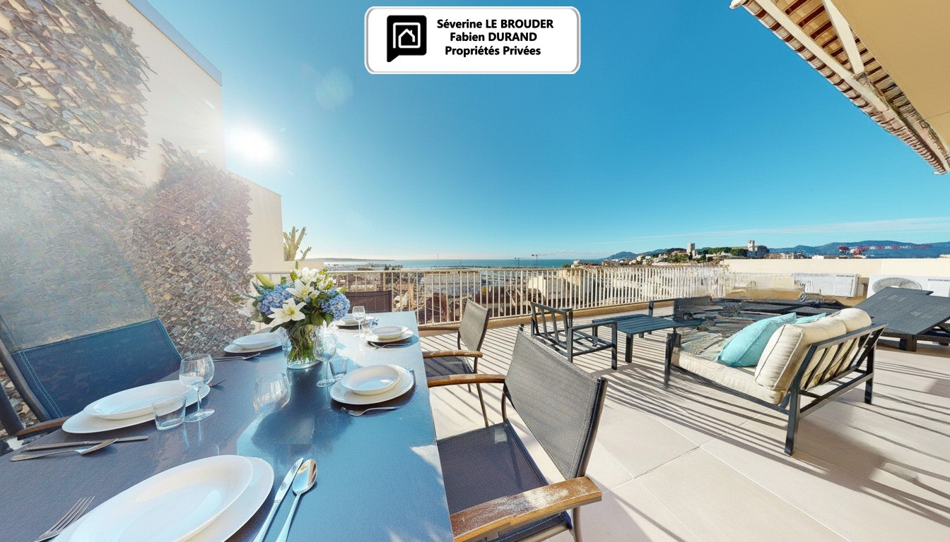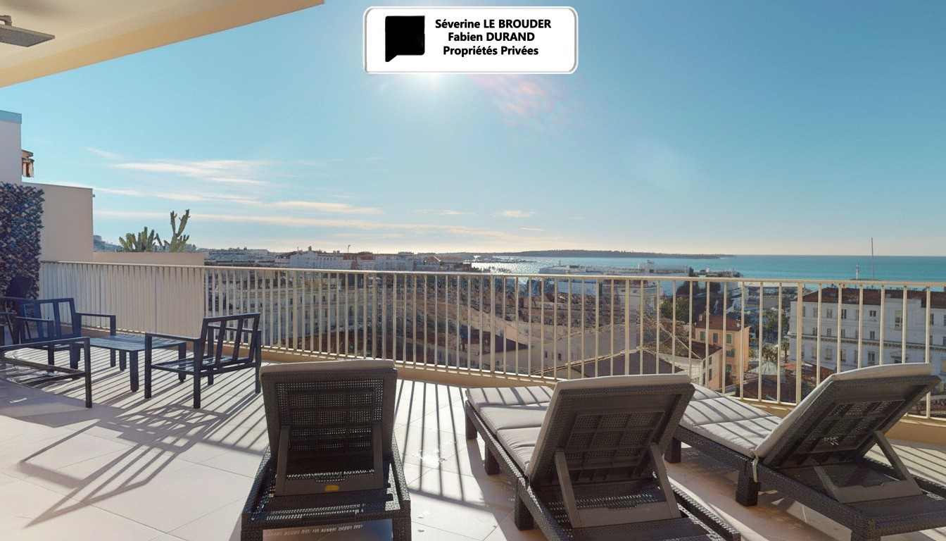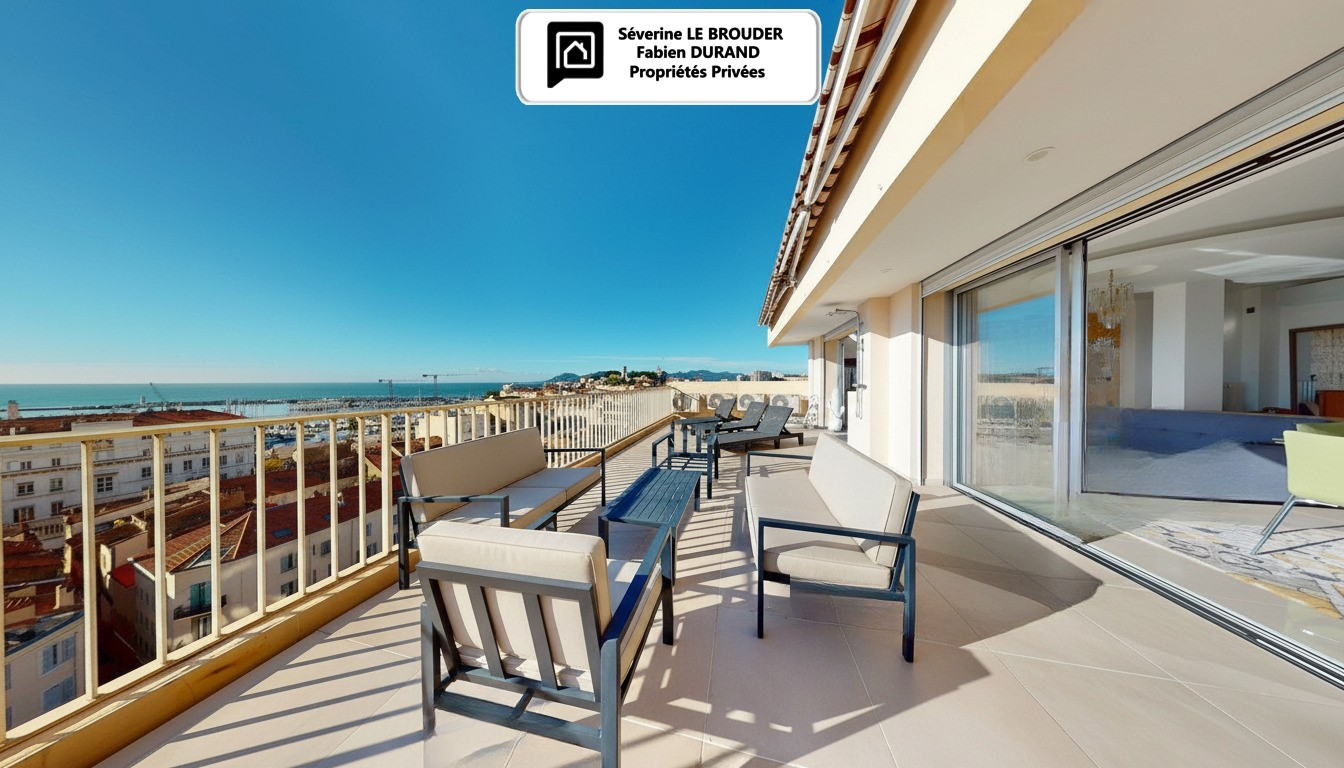 Южная терраса: 46 м² с видом на море, Дворец фестивалей и крыши Канн.