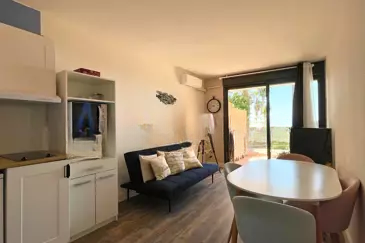 Очень красивое студио с кабинкой, на первой линии у моря, прямо у пляжей, 28 кв. м (по закону Каррез), отремонтировано, с кондиционером, с террасой и небольшим садом, с приятным видом на море.