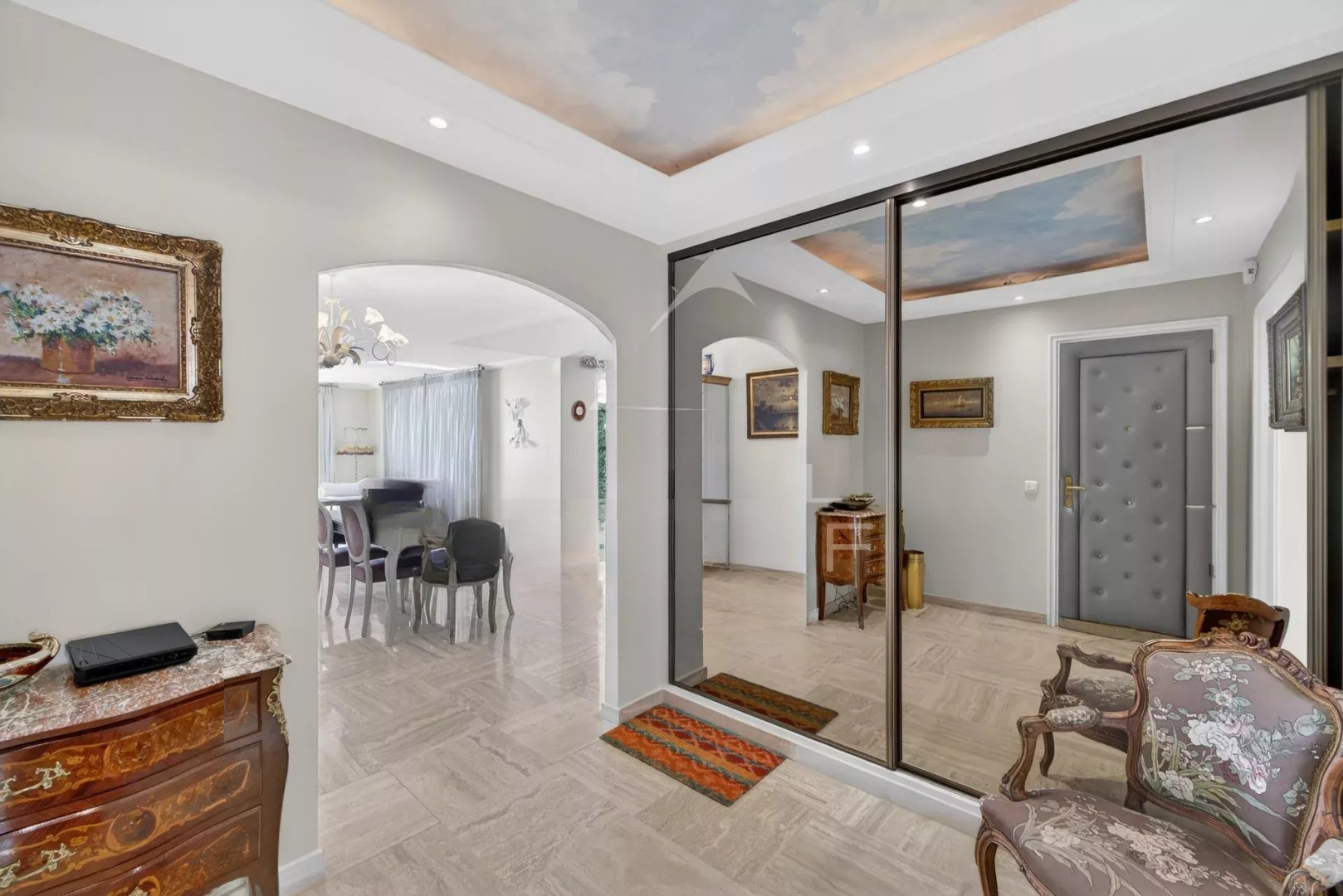 Квартира высокого класса в Каннах, расположенная на Palm Beach, в первой линии набережной. Площадь составляет 143 м², примыкает к морю на набережной Moure Rouge. В квартире имеется входной холл и просторная гостиная площадью 62 м², выходящая на угловую террасу. Две спальни, одна из которых с отдельной террасой, две ванные комнаты с душем и туалетом, отдельная кухня и прачечная завершают это элегантное жилое пространство.