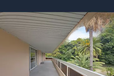 Её главный плюс — большая терраса, откуда открывается захватывающий вид на море и острова. Двойной гараж и подвал завершают этот объект.
