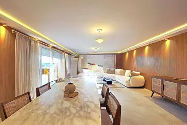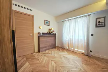 Канн, район Марешаль Жюэн. Квартира угловая, площадью 140 м², терраса 50 м², вид на море, двойной гараж. Отличное расположение, близко к морю и магазинам. Этот великолепный апартамент с роскошным, тёплым и утончённым дизайном расположен в престижной резиденции в районе Басс-Калифорния.