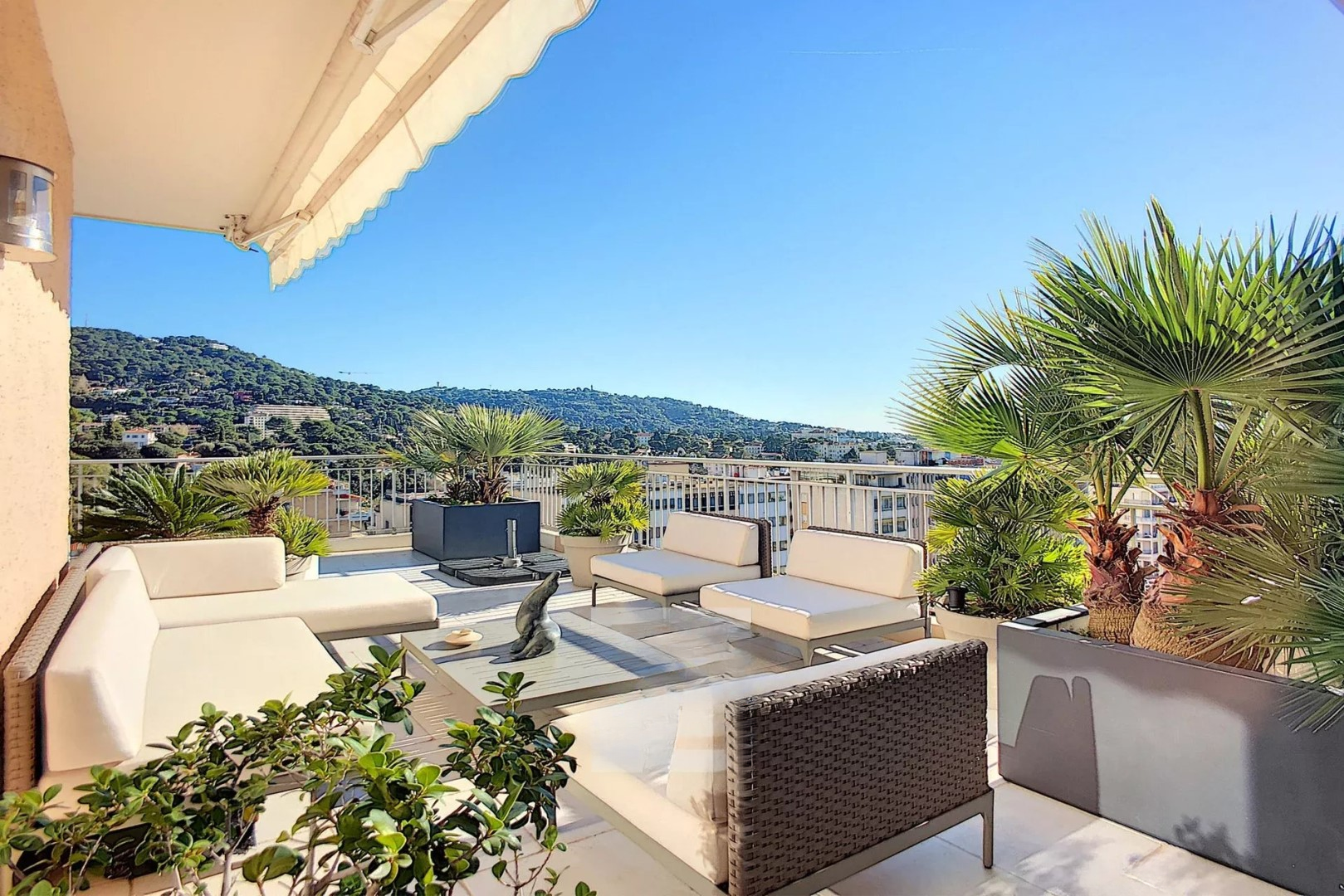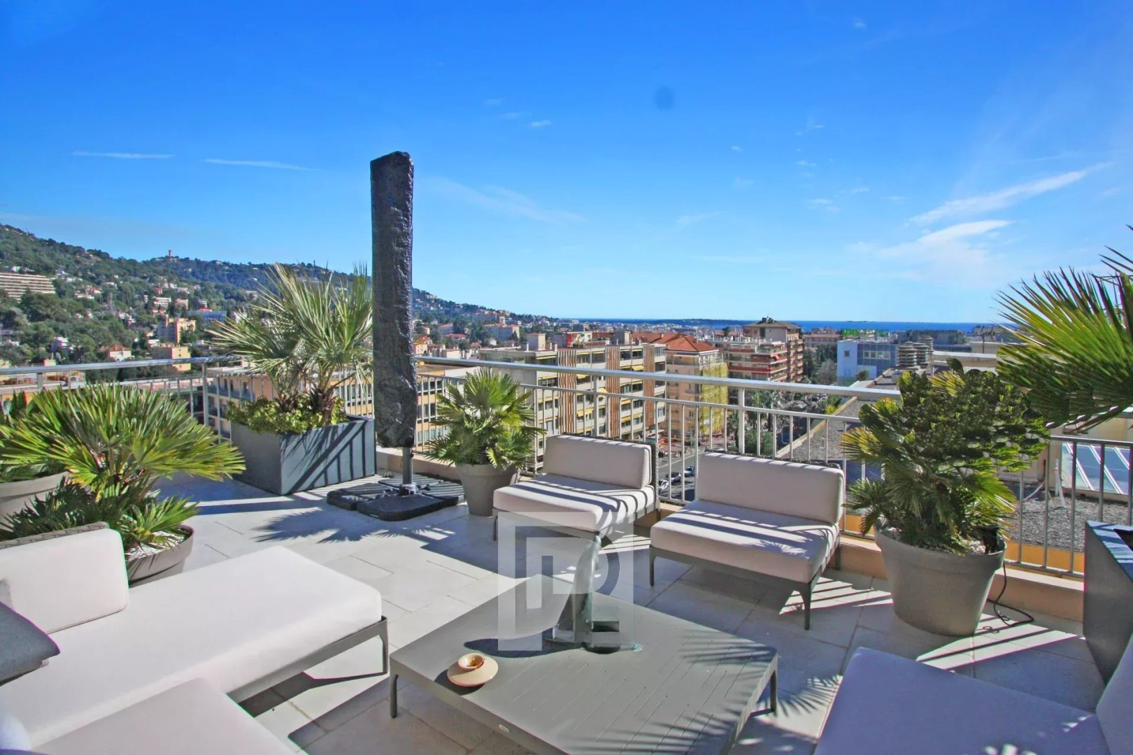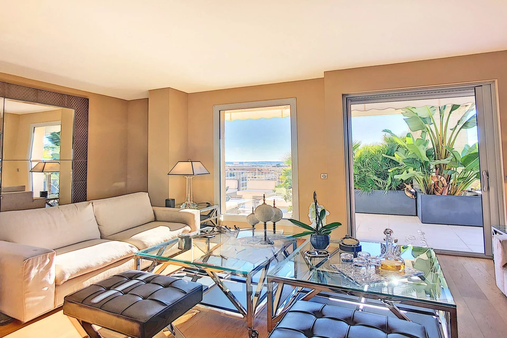 Квартира площадью 164 м² выполнена в стиле вилла/пентхаус с большими объемами и исключительным комфортом. Вокруг — терраса того же размера, полностью оборудованная, с великолепным видом на Калифорнию и частичным видом на море.