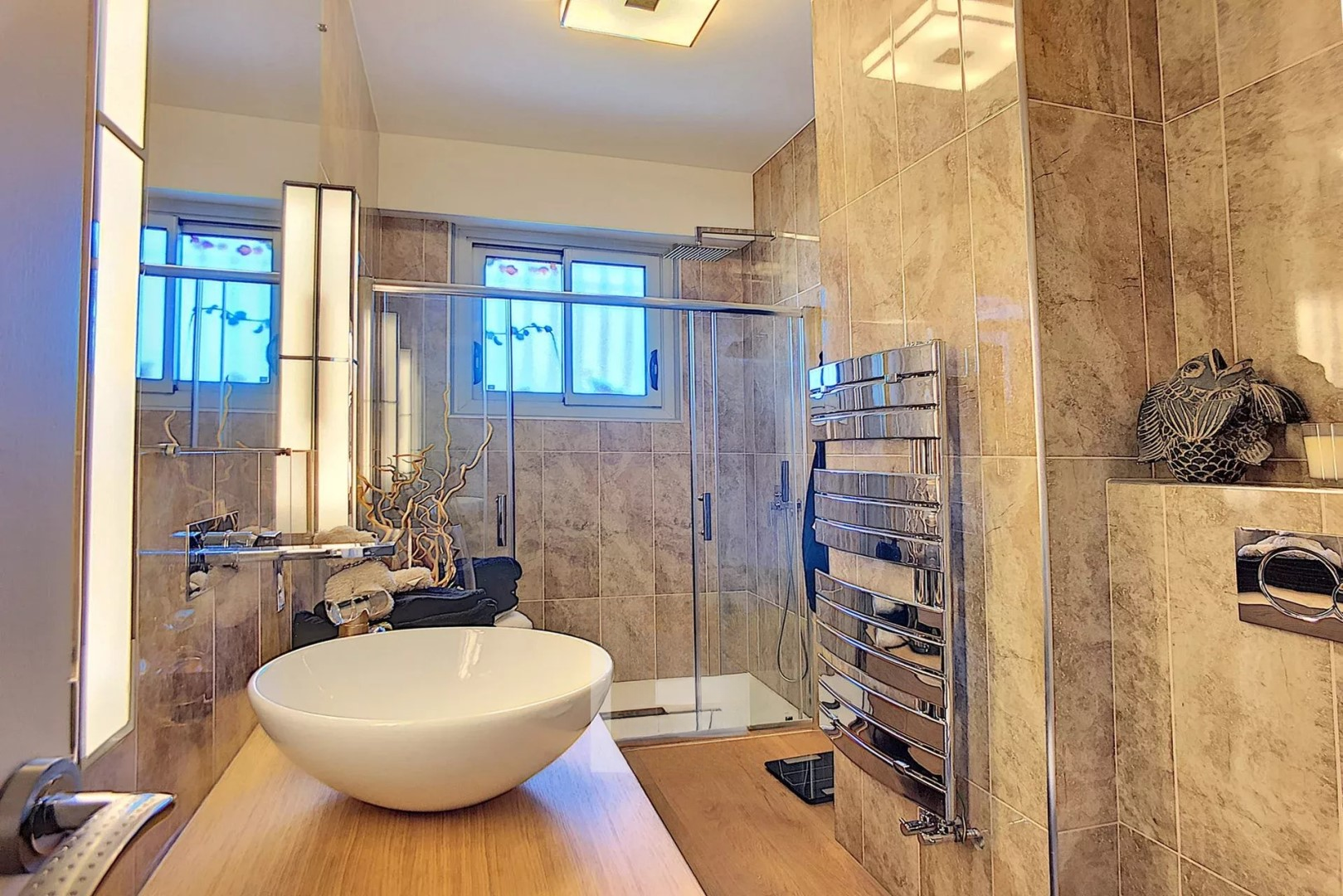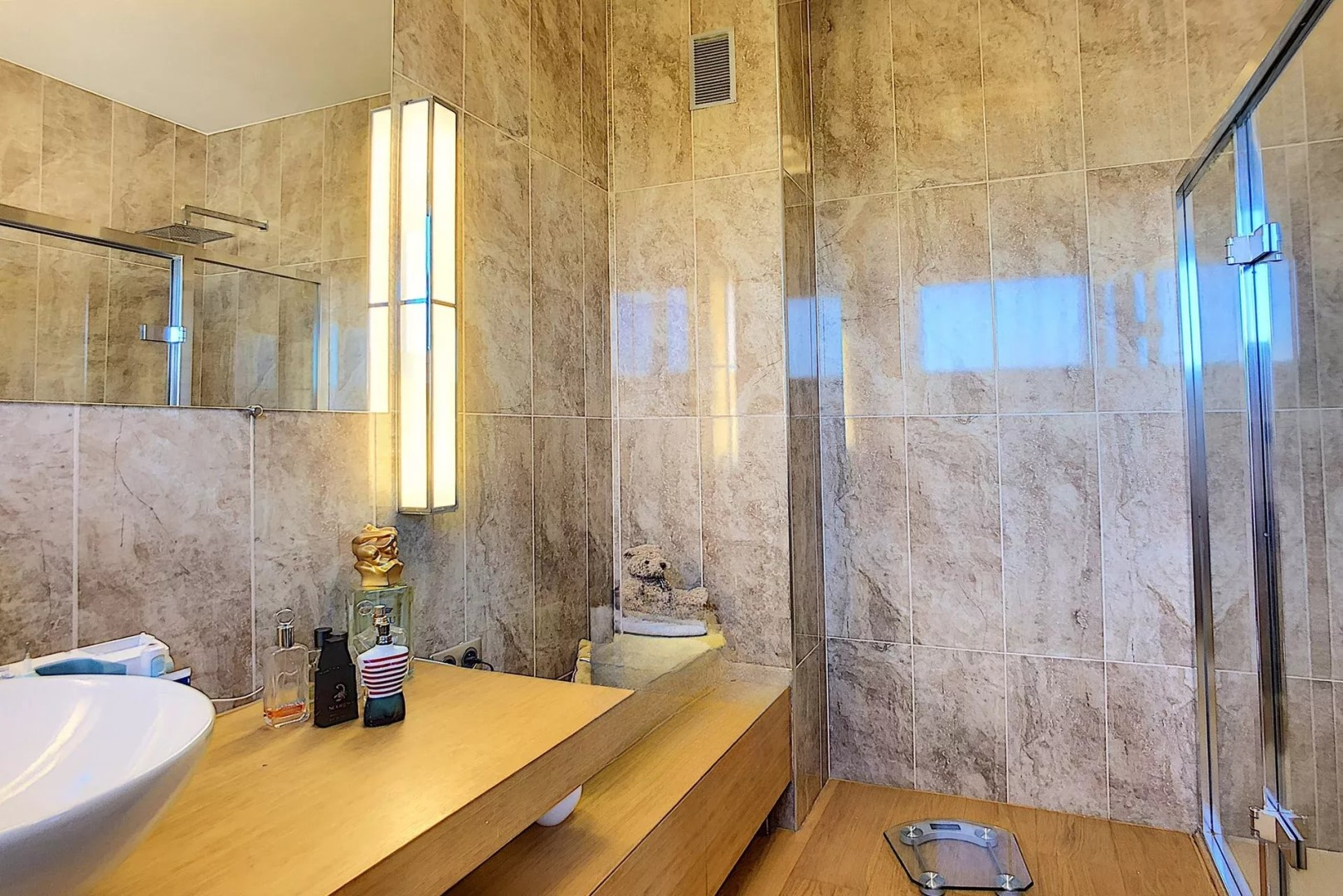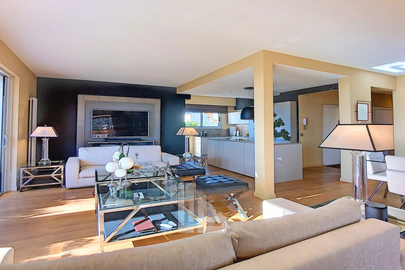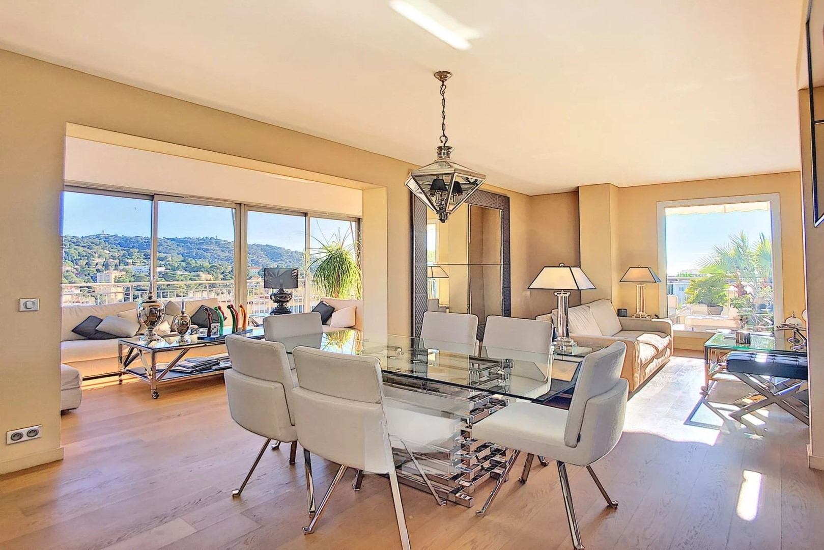 Квартира площадью 164 м² выполнена в стиле вилла/пентхаус с большими объемами и исключительным комфортом. Вокруг — терраса того же размера, полностью оборудованная, с великолепным видом на Калифорнию и частичным видом на море.