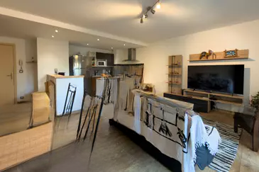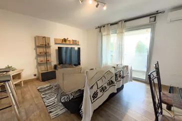 Апартамент включает в себя уютную спальню, современную ванную комнату, а также открытую, полностью оборудованную кухню, которая выходит в светлую гостиную с приятной террасой, идеальной для отдыха.