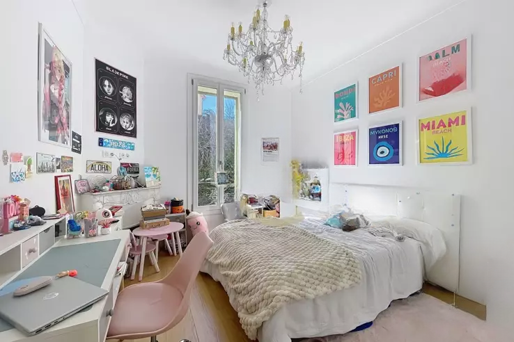 Полностью и с любовью отреставрированная в 2021 году, квартира впечатляет своими исключительными объемами, с высотой потолков более 3,50 м, сохранившимся старинным шармом (декоративными каминами в спальнях) и оптимизированной планировкой без потери пространства. Квартира ориентирована на юг, что обеспечивает хорошую освещенность на протяжении всего дня, и имеет приятный балкон площадью около 5 м² с новым навесом и без соседей напротив.
