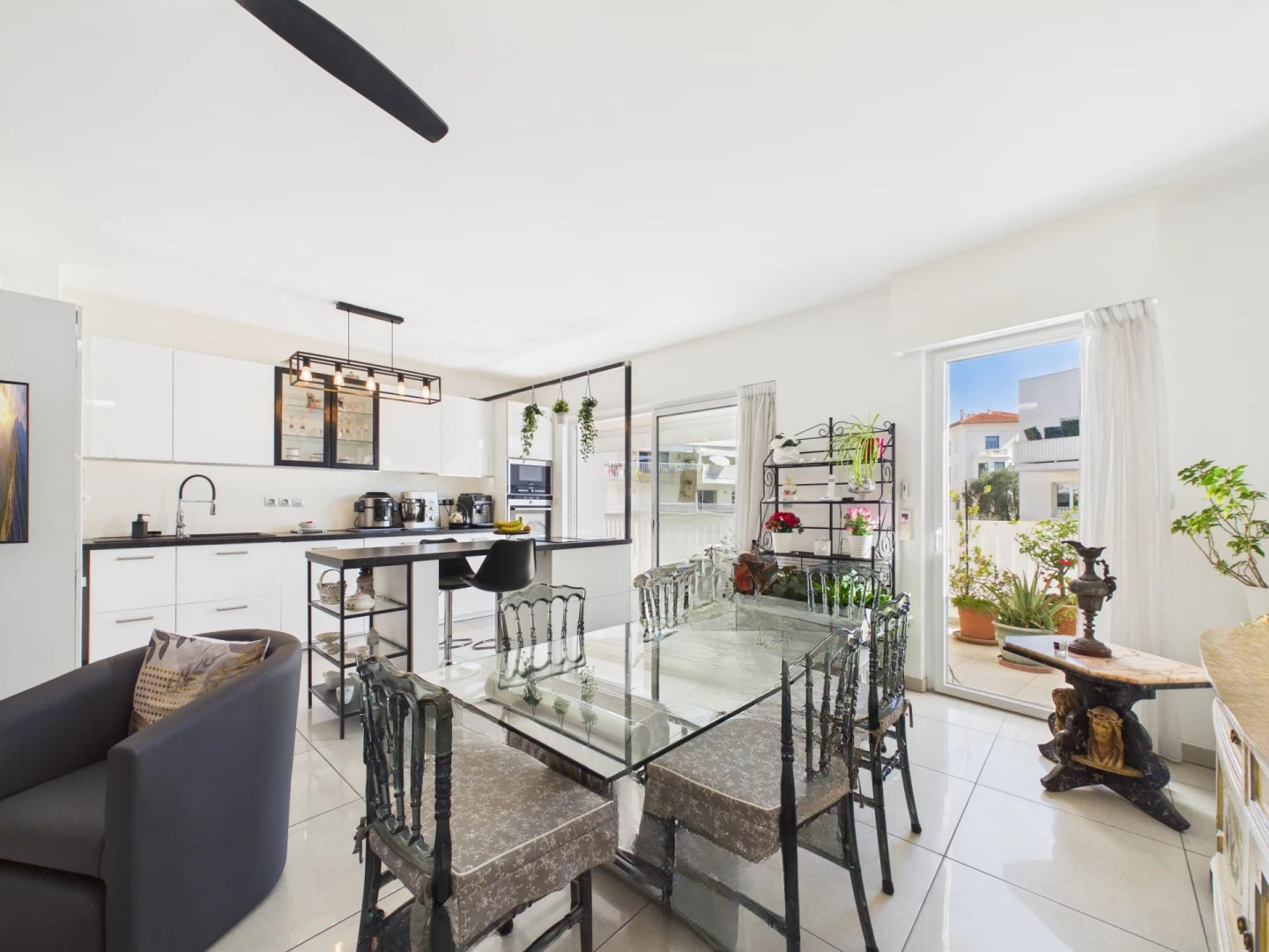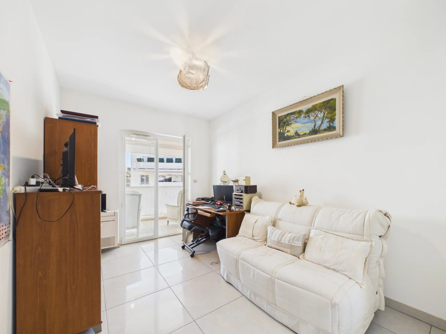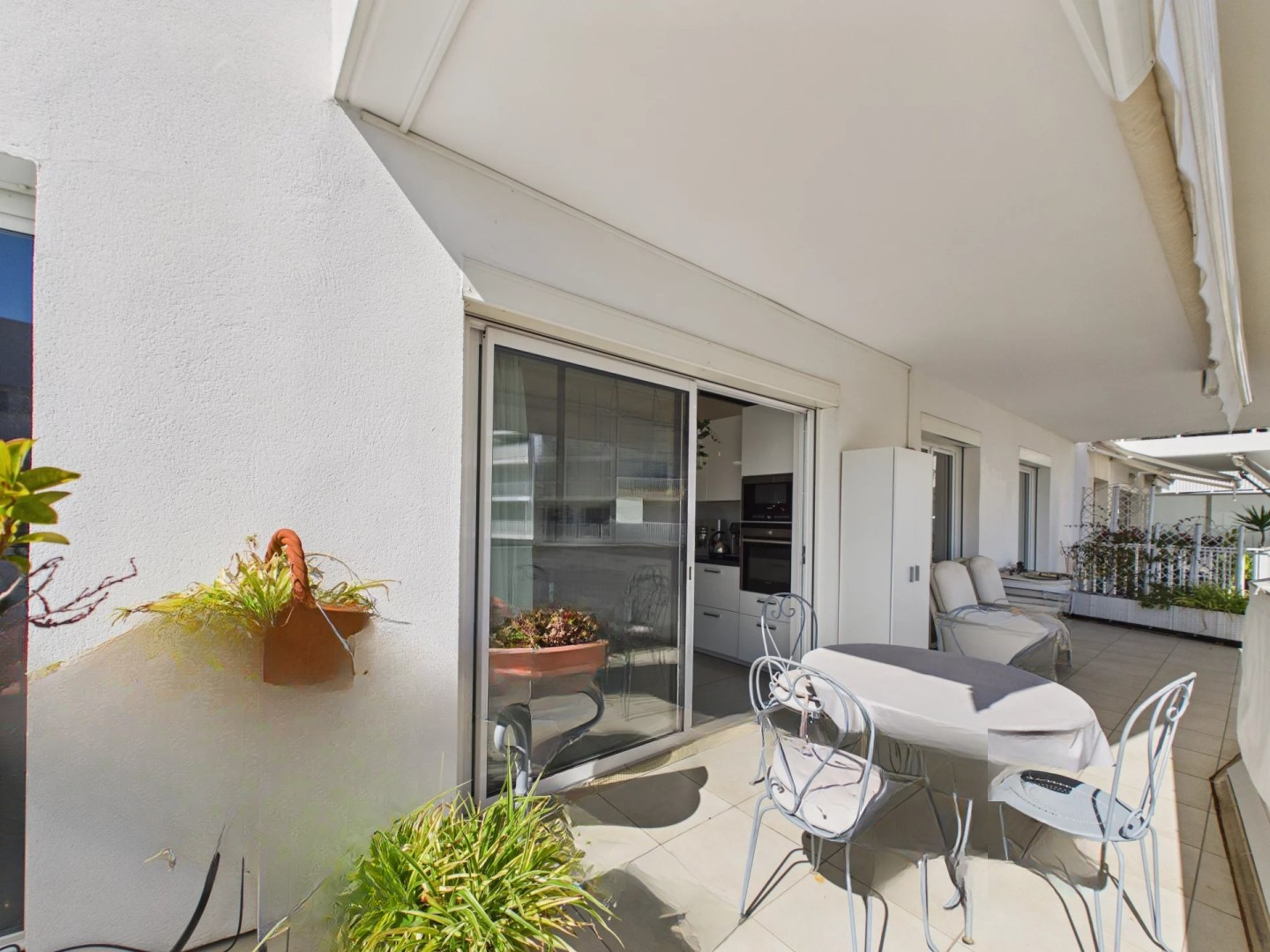 В нескольких шагах от пляжей Круазет и в непосредственной близости от центра Канн и всех удобств, откройте для себя эту просторную светлую трехкомнатную квартиру площадью 80 кв. м, расположенную в современной и безопасной резиденции, в тишине.