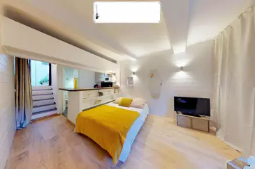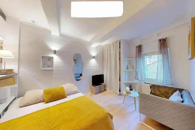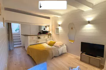 Это очаровательное студио, расположенное в сердце исторического и знакового квартала Сюке в Каннах, находится на одной из самых красивых улиц района. Привлекательный для любителей аутентичности, этот район отличается своей редкой тишиной и непосредственной близостью к порту, Дворцу фестивалей, мэрии, пляжам, ресторанам и всем магазинам центра города.