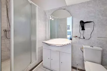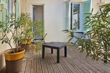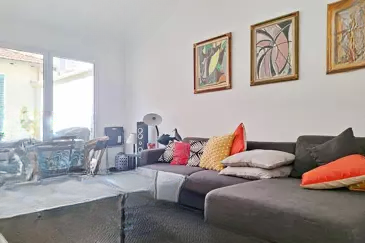 10 минут до улицы Антиб и вокзала. Уникальный 3-комнатный апартамент в очень хорошем состоянии, с двойным остеклением и кондиционером. Гостиная с выходом на террасу площадью 20 кв.м, ориентированную на юг.
